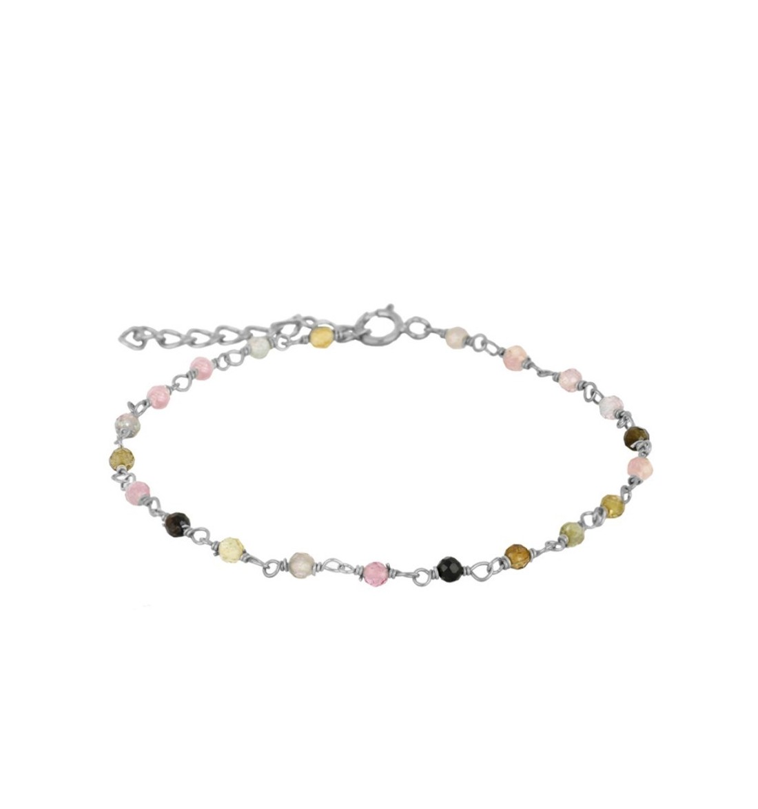 Last items in stock Bracelets in silver NÍCEA BRACELET SILVER PU32RH €18.50 -Bracelet made of 925 sterling silver . -Stone: Tourmaline -Adjustable chain from 15cm to 18cm. Add to cart