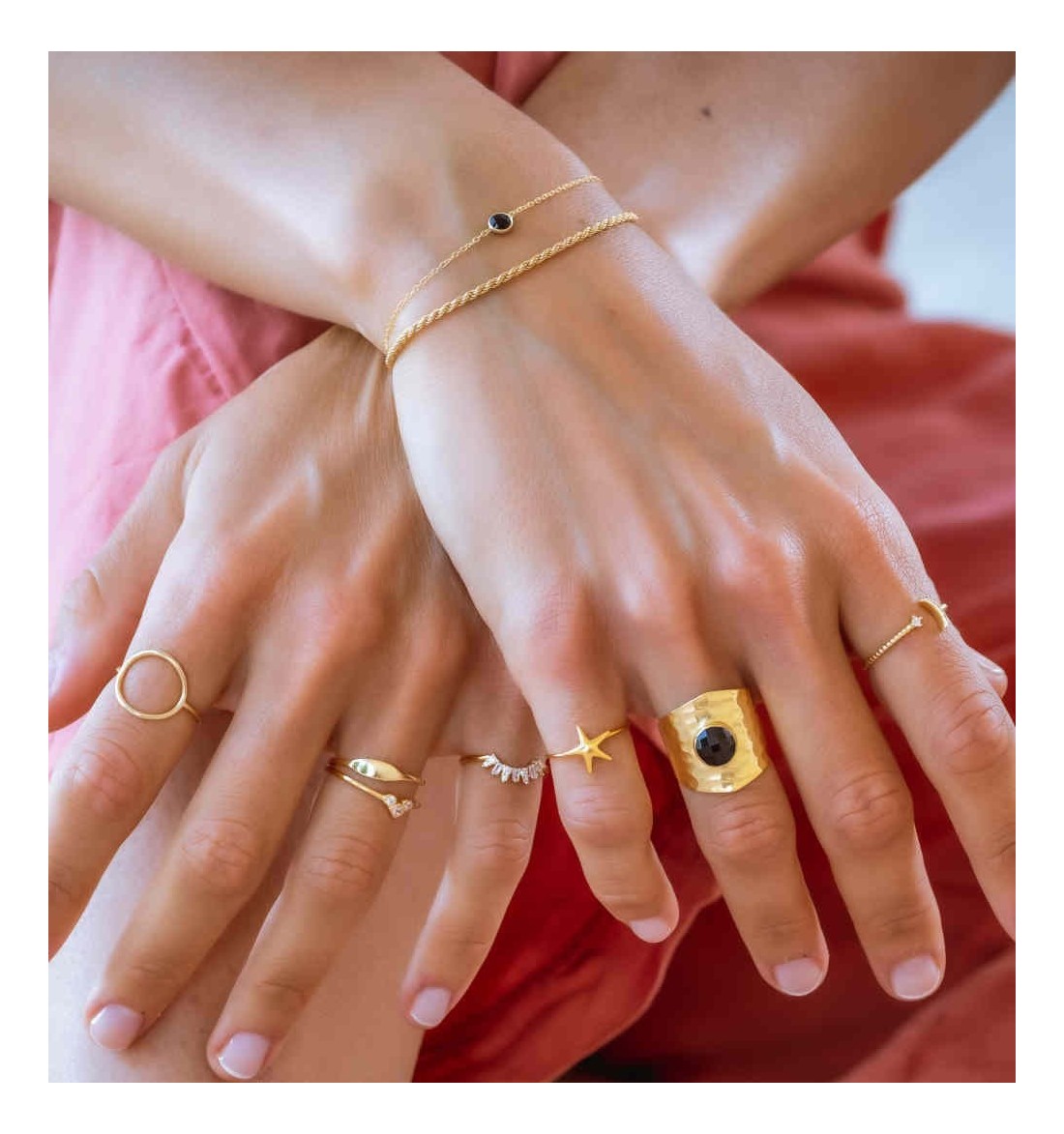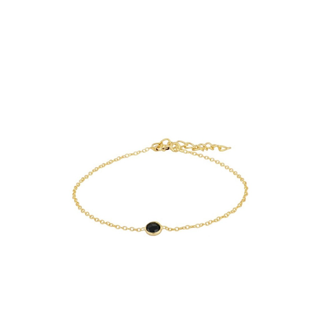 Fuera de stock Bracelets in gold RIVIERE BLACK BRACELET GOLD PU52DO €31.00 -Bracelet made of 925 sterling silver 18 carat gold plated. Adjustable chain from 15cm to 18cm. -Stone: Black zircons. View