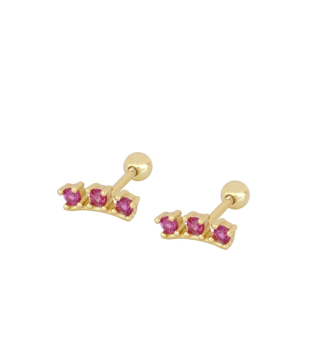 Last items in stock Earrings in gold MILI FUCSIA MINIS GOLD PE609DO From: €9.00 From: Gold-plated sterling silver earring. They are sold individually or in pairs. -Closure: pressure -Stone: Fuchsia Zirconia -Available in more colors. -Measure: 4mm. Add to cart