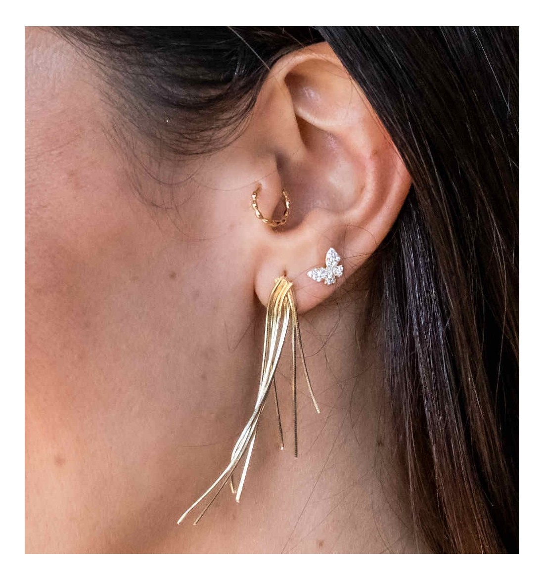 Last items in stock Earrings in gold AOKI MINIS GOLD PE525DO From: €11.00 From: Gold-plated sterling silver butterfly earring. -Measure: 8,5mm. They are sold individually or in pairs. Add to cart