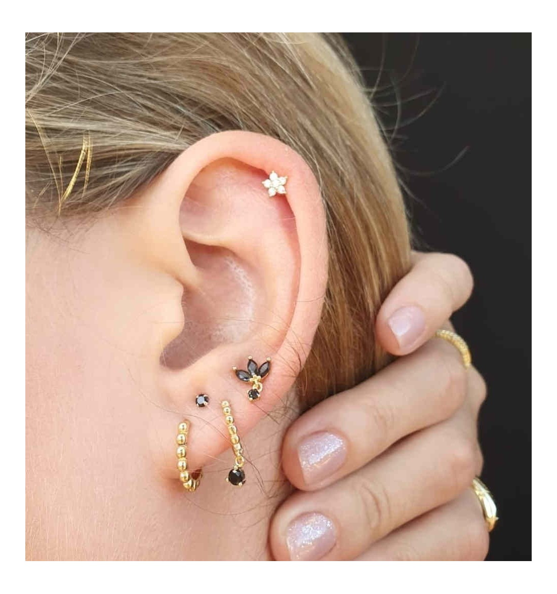 Last items in stock Earrings in gold BLACK MEG HOOPS GOLD PE290DO From: €12.50 From: -11mm hoop with black zirconia earrings, made of 925 sterling silver, gold plated 18k. - Stone:Zircons -They are sold individually or in pairs. Add to cart