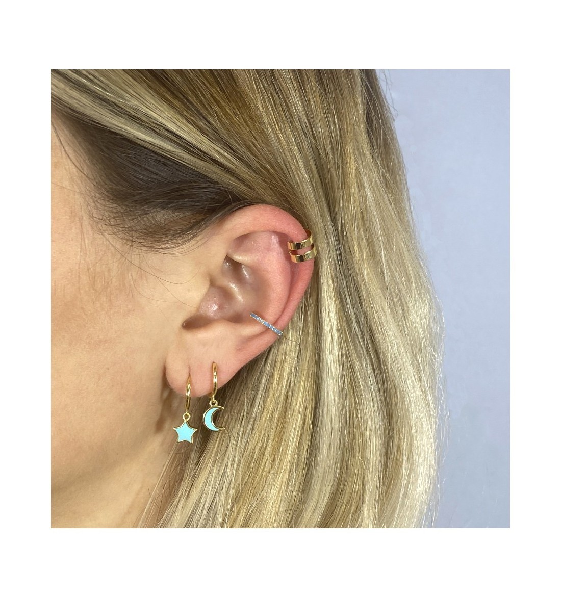Last items in stock Earrings in gold EAR CUFF OCEAN GOLD EC20DO From: €13.50 From: ear cuff made of 18 karat gold plated 925 sterling silver with zirconia turquoise around. They are sold individually or in pairs. Add to cart