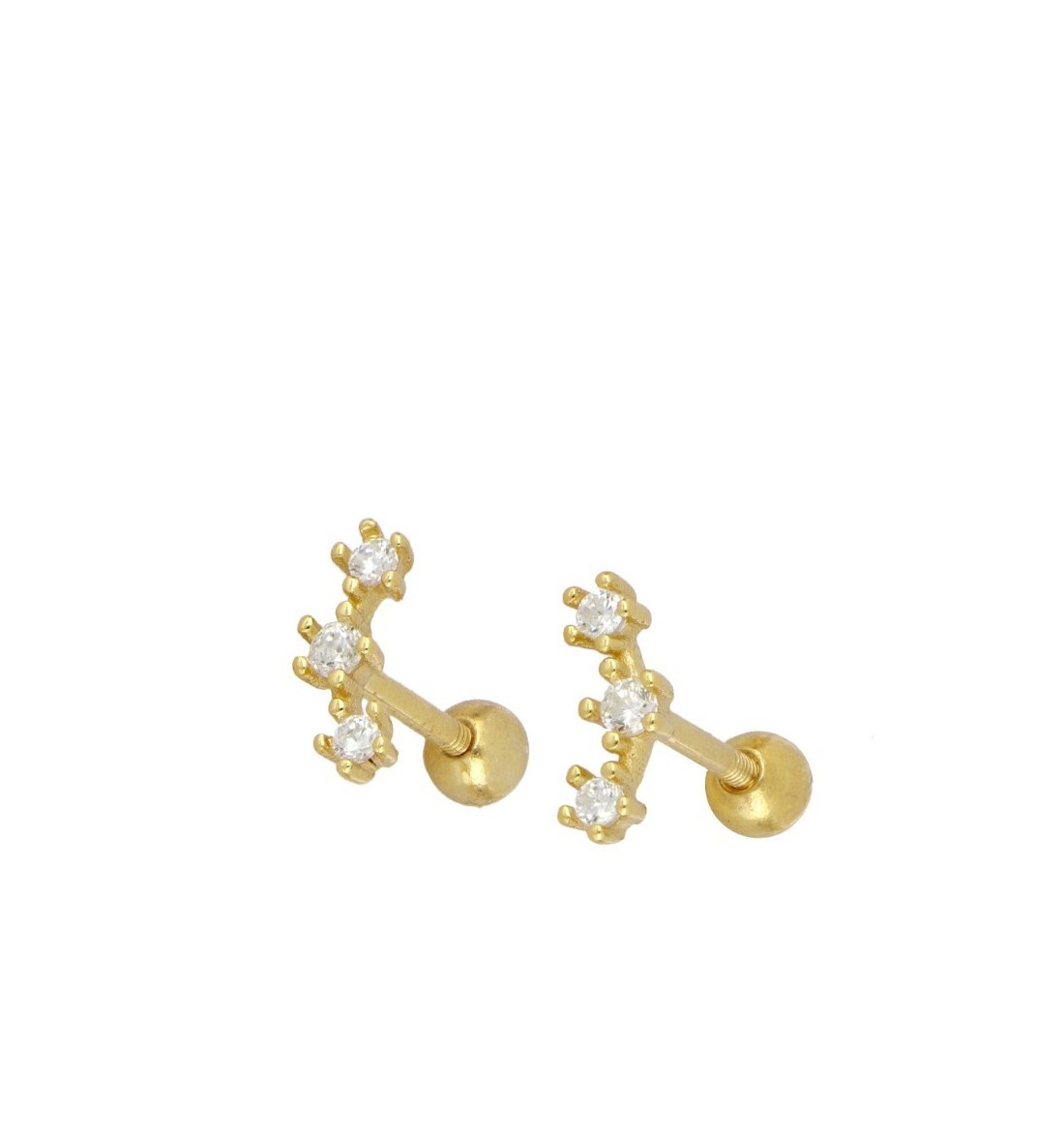 Last items in stock Earrings in gold TAHIA MINIS GOLD PE623DO From: €15.50 From: Gold-plated sterling silver earring. They are sold individually or in pairs. -Closure: pressure -Stone: Zircons Add to cart