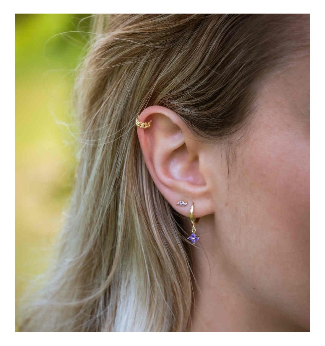 Last items in stock Earrings in gold MARIEL LILAC HOOPS GOLD PE336DO From: €17.50 From: -11mm hoop earrings with a brilliant lilac zirconia made of 925 sterling silver, plated in 18 carat gold. Available: Zirconia black, lilac and champagne. - Measure charm: 6mm They are sold individually or in pairs. Add to cart