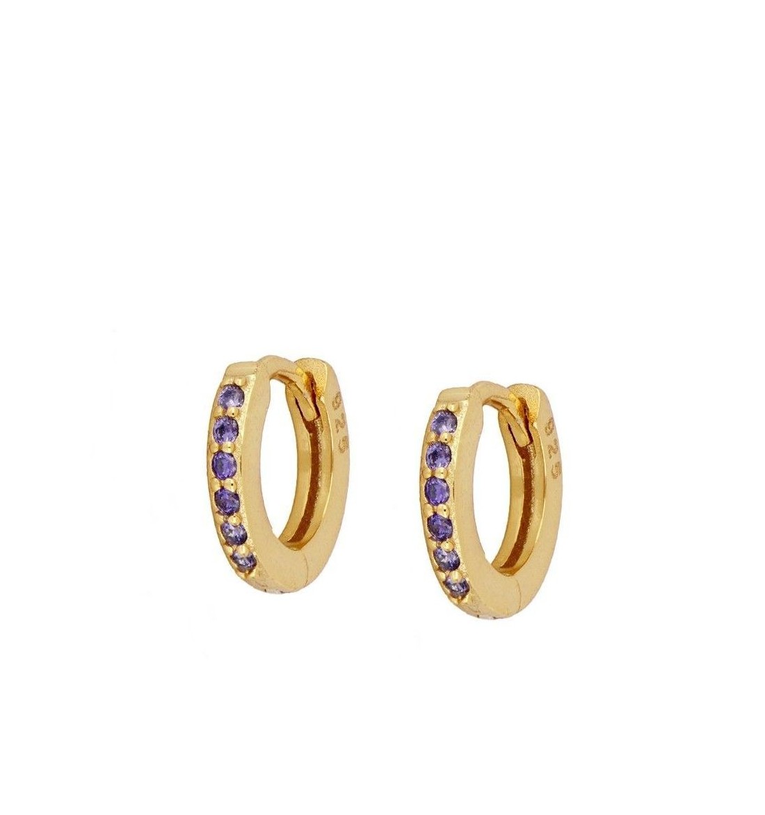 Last items in stock Earrings in gold GRETA LILAC GOLD PE326DO From: €14.50 From: -13mm hoop with lilac zirconia earrings, made of 925 sterling silver, gold plated. -Available in more colors -They are sold individually or in pairs. Add to cart