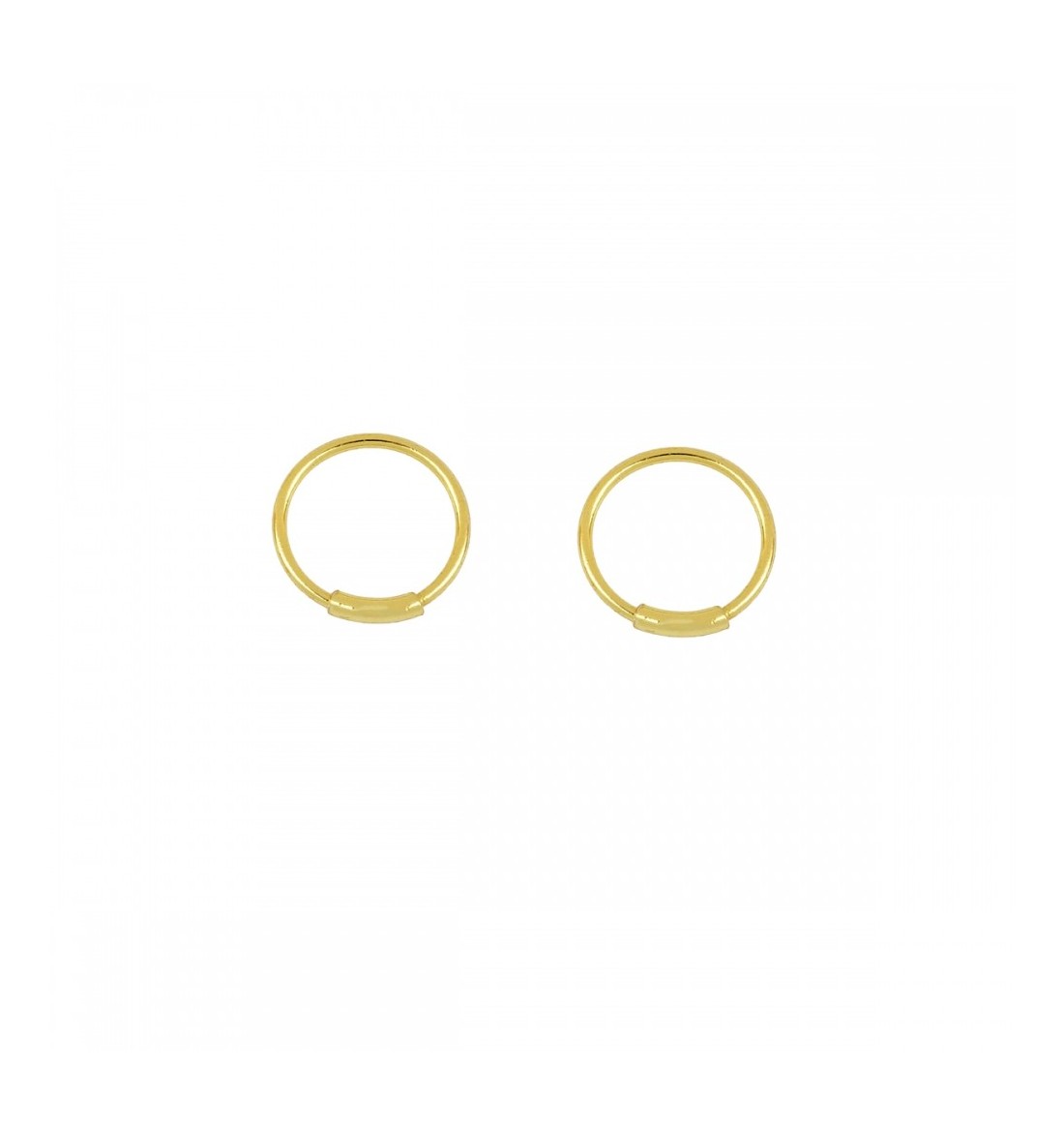 Last items in stock Earrings in gold SIMPLE HOOPS GOLD PE278DO From: €7.50 From: Earrings of ring of 11 mm, 925 sterling silver, plated-gold 18k.. They are sold individually or in pairs -Closure: pressure -Available: 11, 13, 15 1nd 18 mm. Add to cart