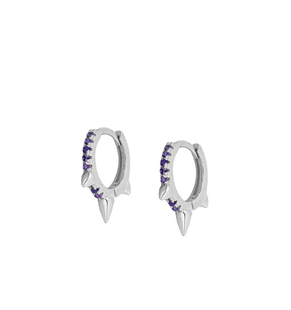 Last items in stock Earrings in silver GRETA LILAC SILVER PE326RH From: €14.50 From: -13mm hoop with lilac zirconia earrings, made of 925 sterling silver. -Available in more colors. -They are sold individually or in pairs. Add to cart