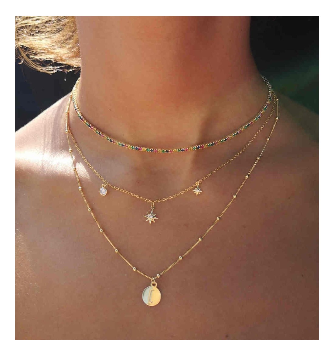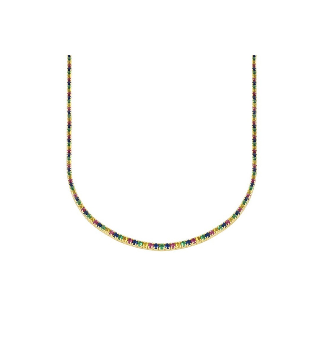 Last items in stock Necklaces in gold RIVIERE GOLD CO159DO €49.50 Sterling silver necklace with zirconias, and 18 carat gold plated. Chain: 33-40cm Add to cart