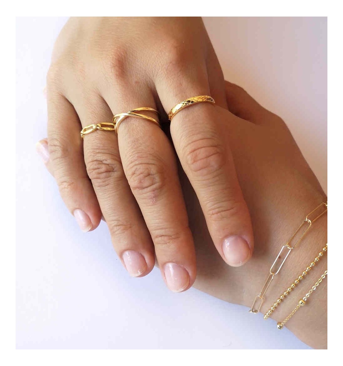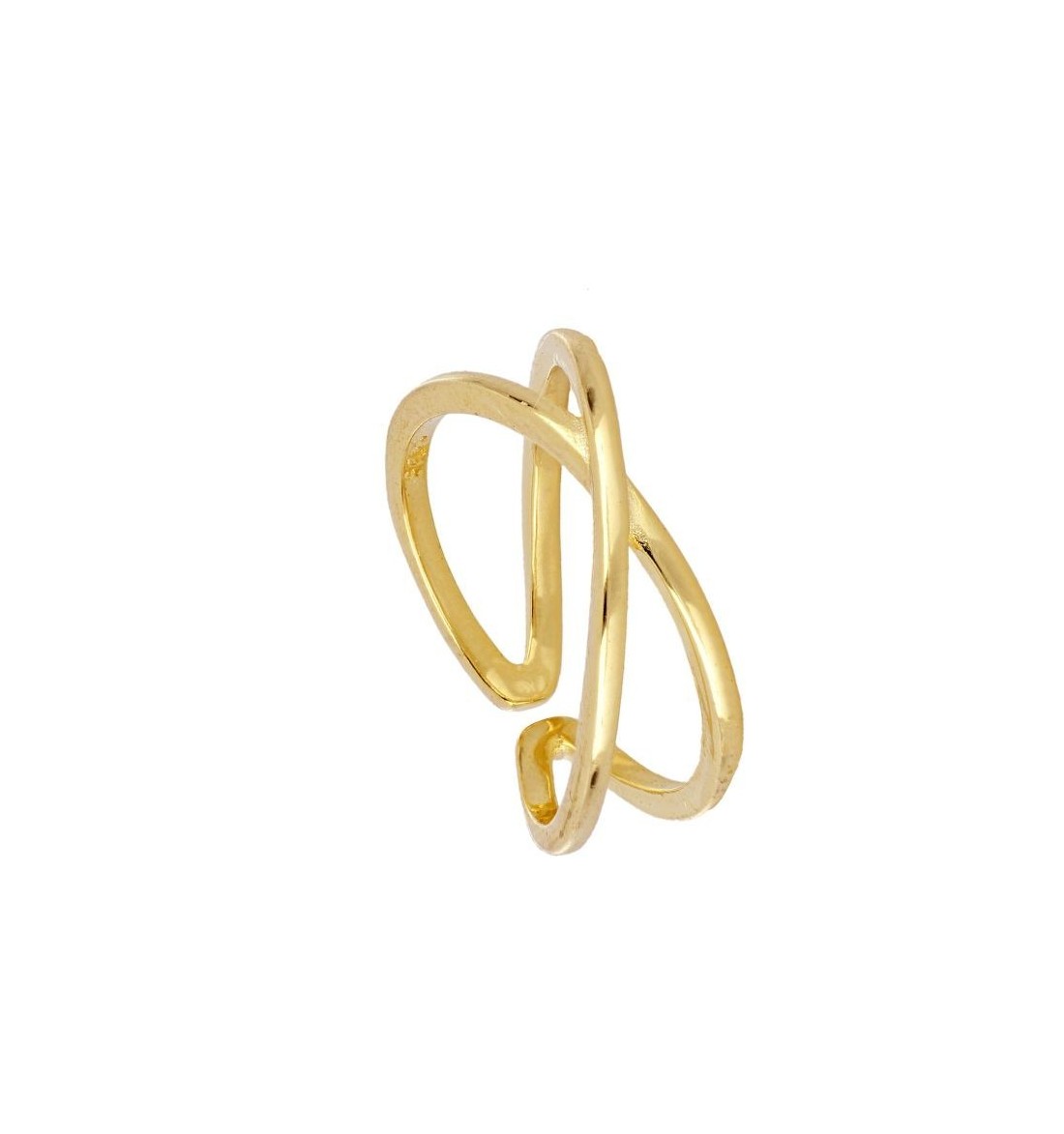 Anillo doble cruzado abierto, de plata 925 bañado en oro de 18 k.