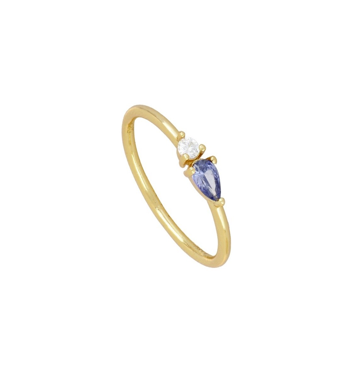 Anillo de plata con circonitas y baño de oro