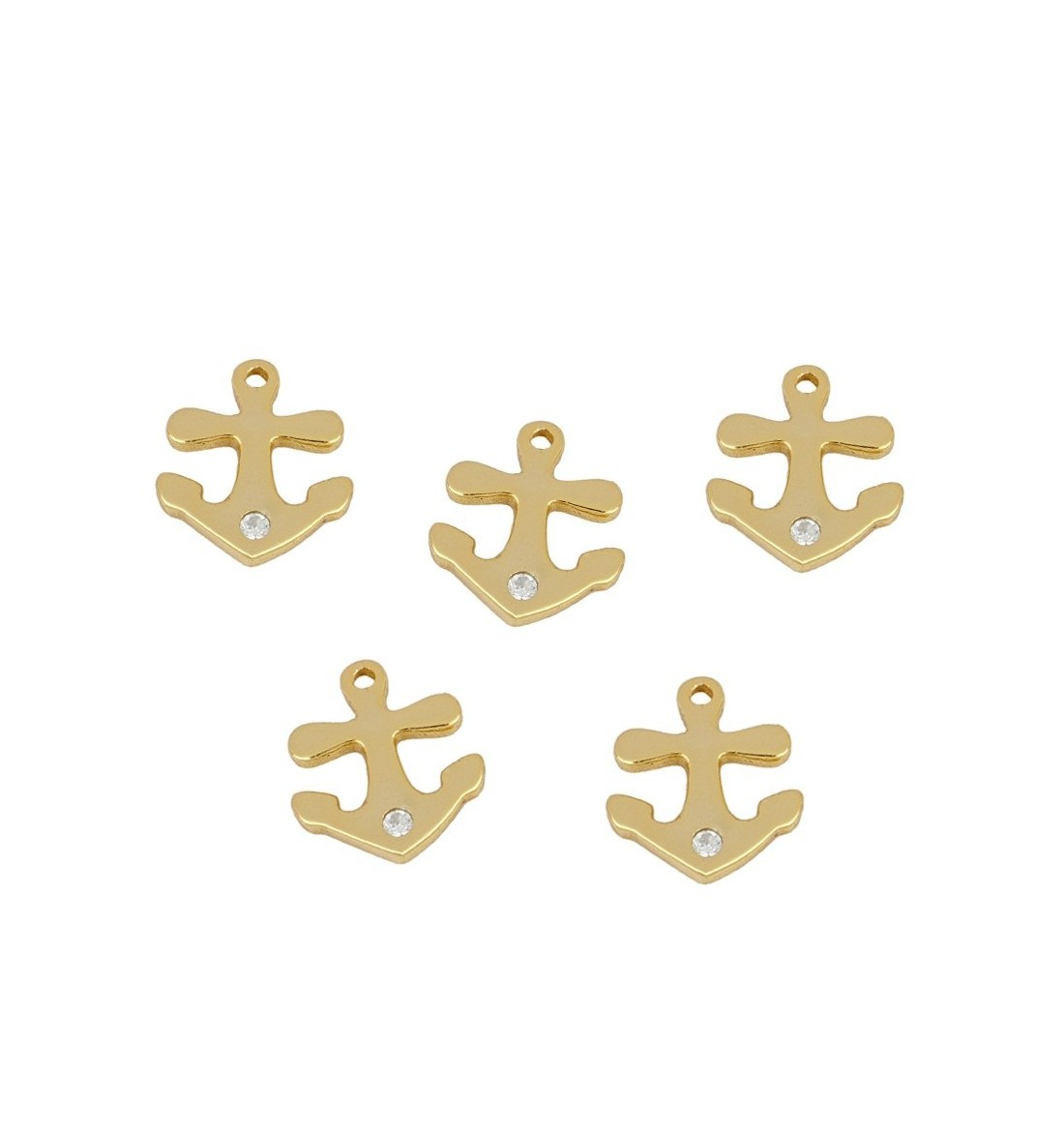 Un charm de una ancla, de plata 925 rodiada con baño de oro.