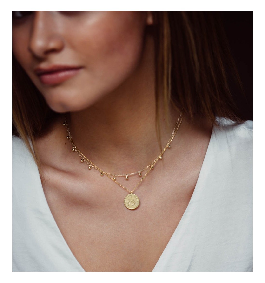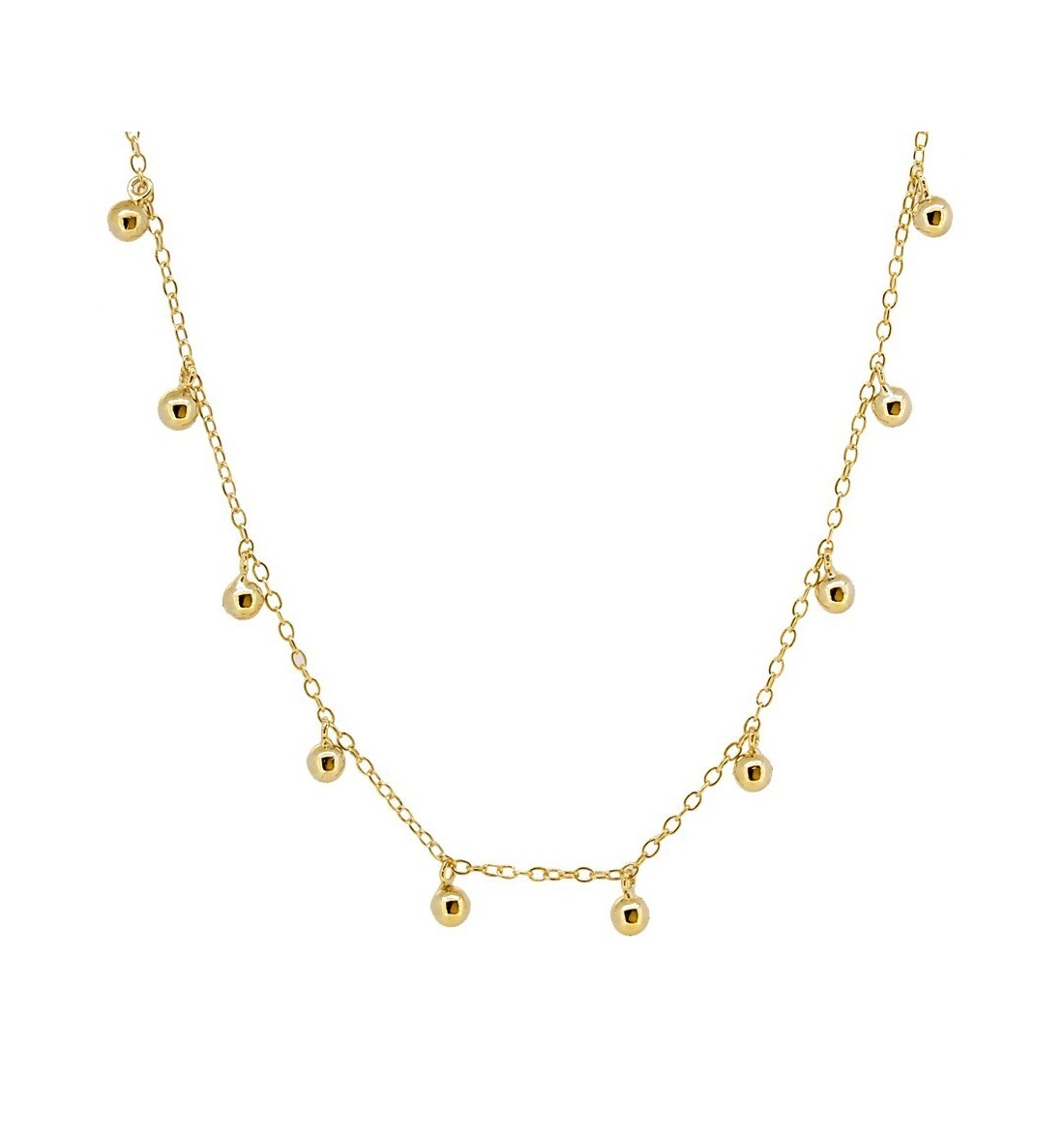 Gargantilla bolitas colgando, plata 925 bañada en oro.
