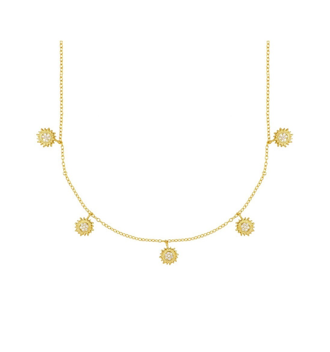 Gargantilla con 5 soles, de plata 925, con baño de oro .