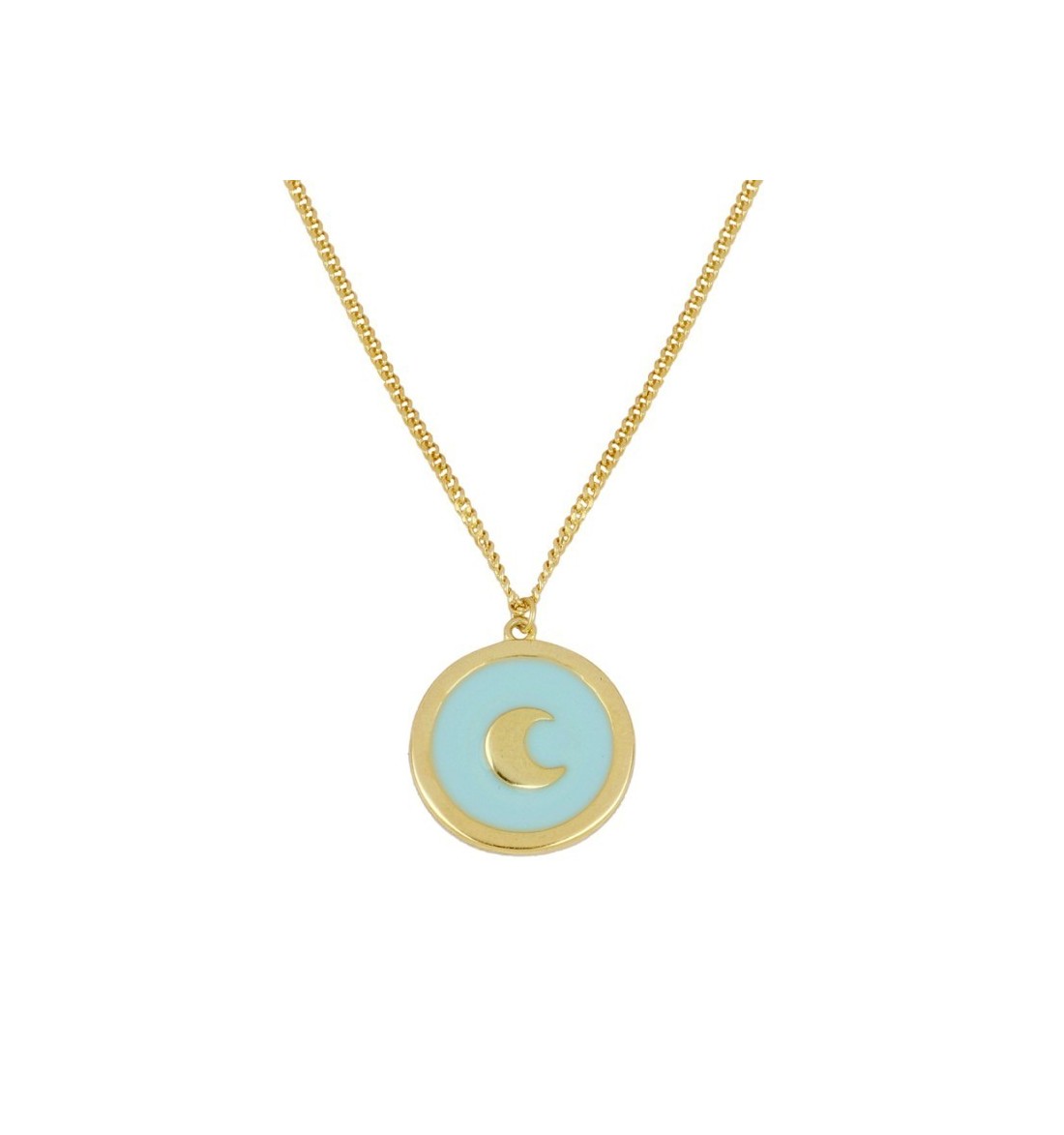 Collar de plata de ley y baño de oro, con luna sobre enamel turquesa