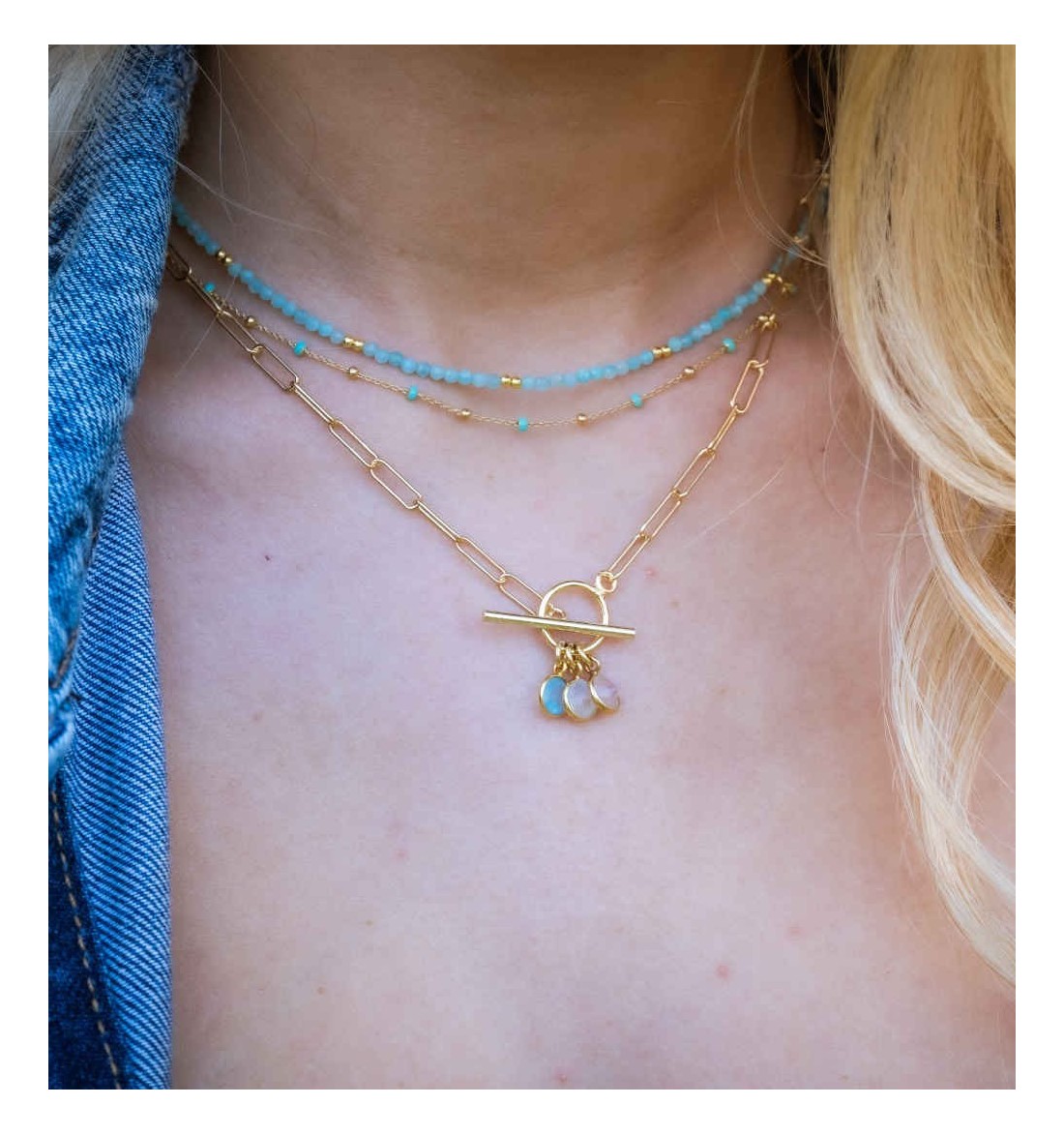 Gargantilla de plata 925 , bañado en oro, con 3 minerales.