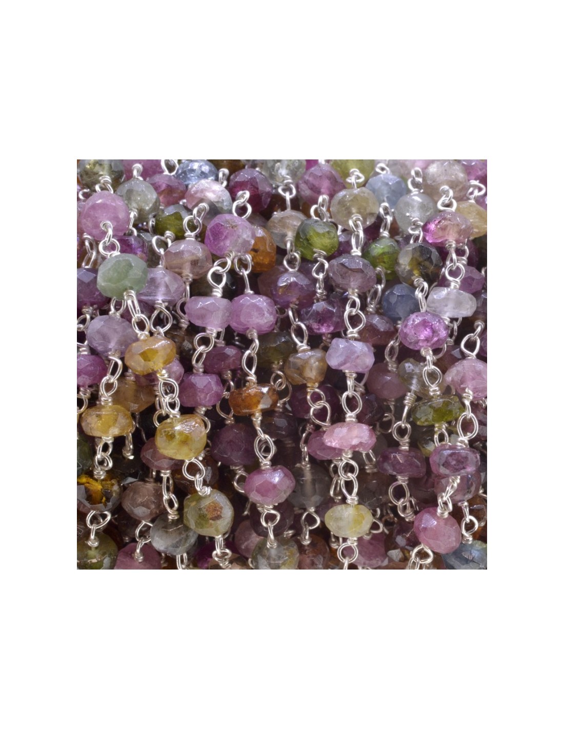 Collar largo de piedras semipreciosas en forma de rosario en plata de primera ley