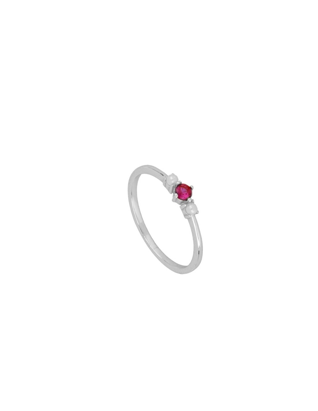 Anillo circonita rubí y perlas  de plata 925.
