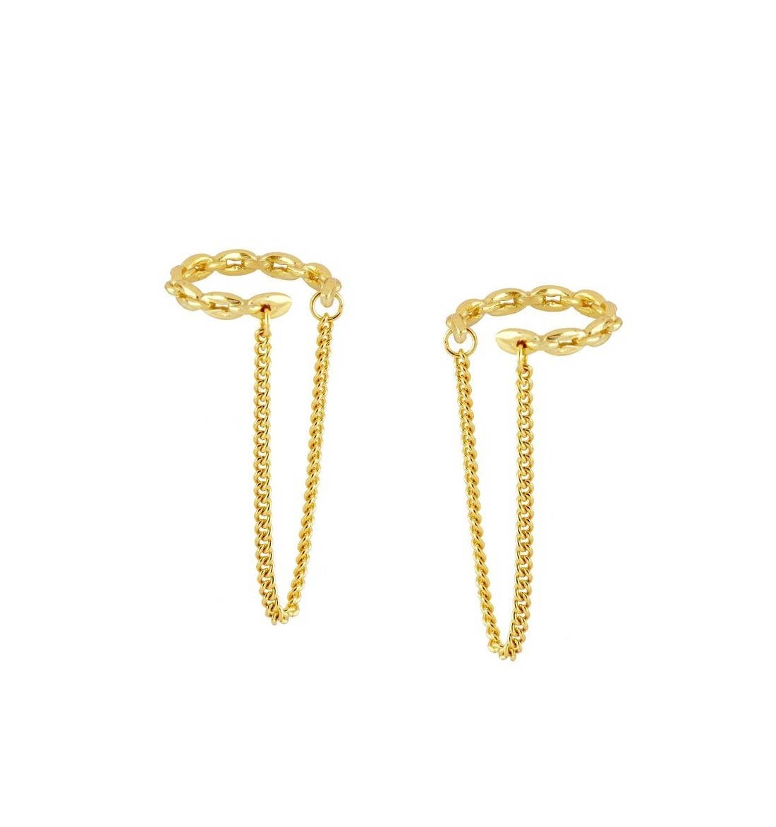 Pendiente Ear Cuff con cadena , de plata 925 con baño de oro .