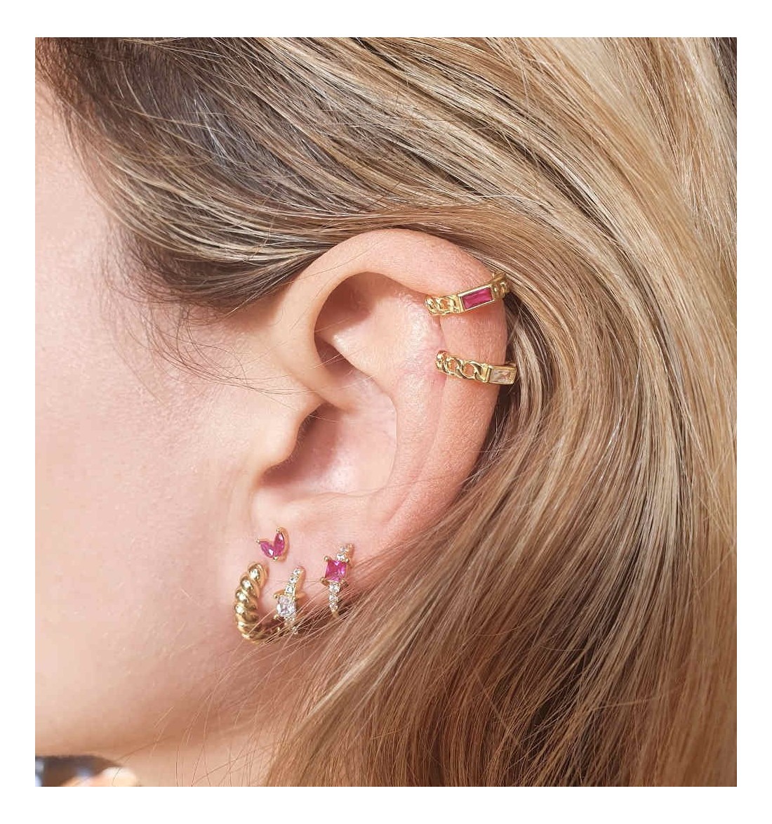 EAR CUFF BRENDA FUCHSIA GOLD | Bymarta.es