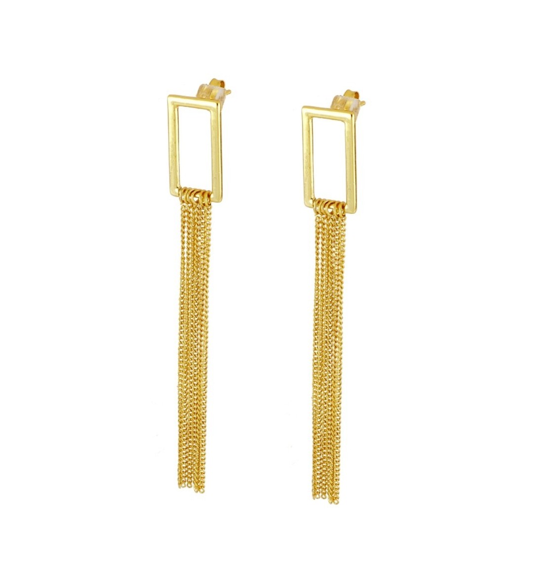Pendientes largos de plata de ley con baño de oro.