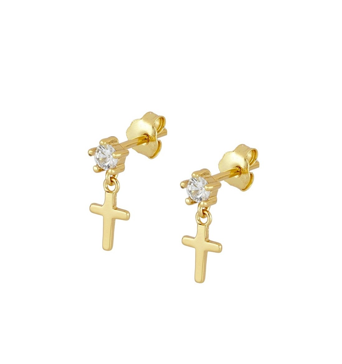 Pendiente mini, disponible en plata de primera ley, con baño de oro y circonita