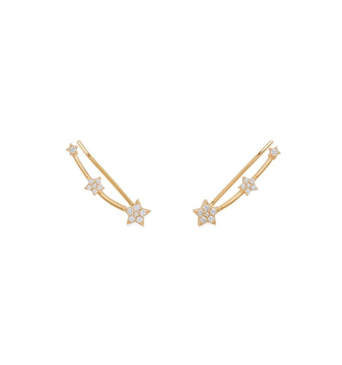 Pendientes trepadores con 3 estrellas de plata 925, bañado en oro de 18 k .