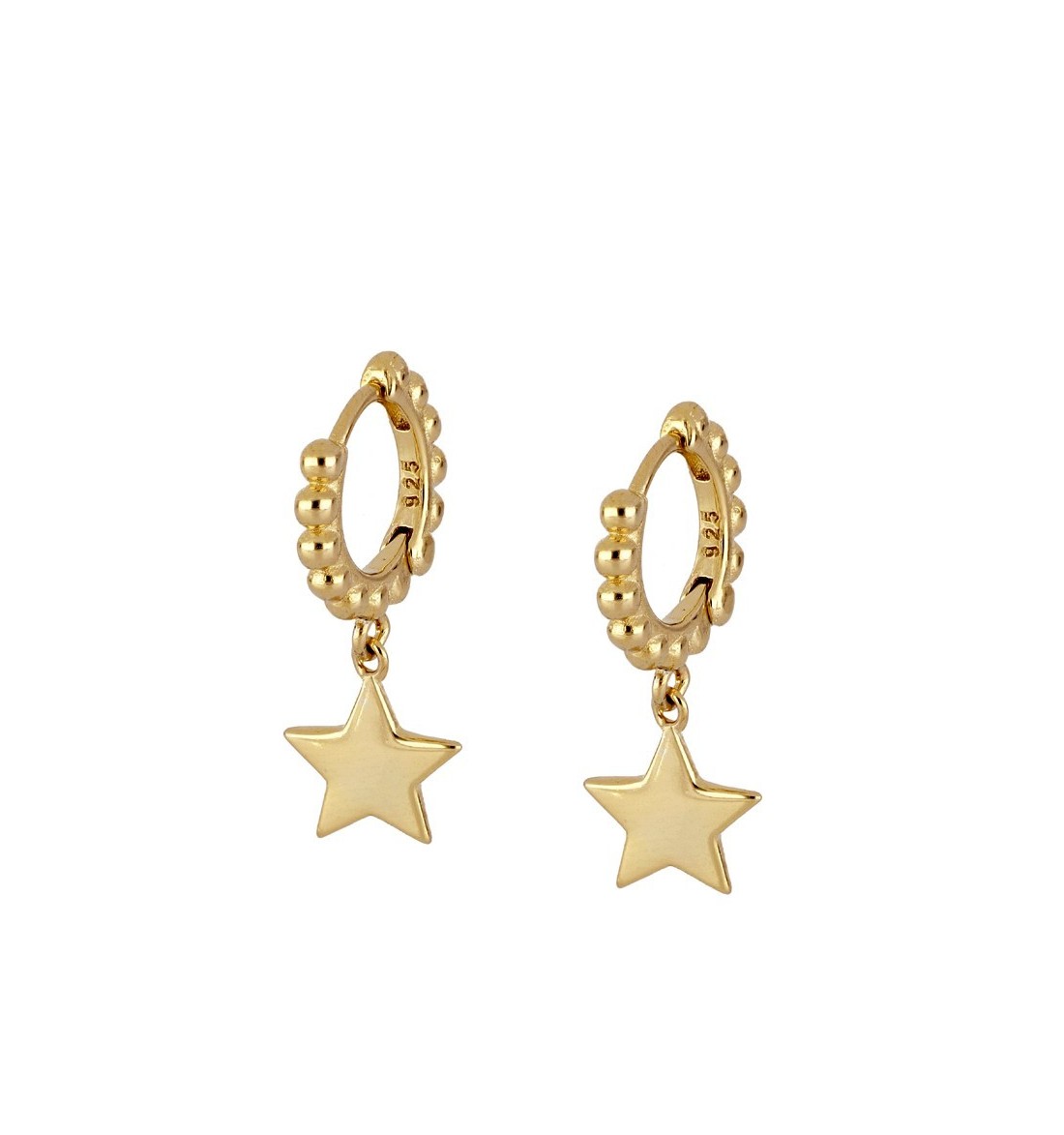 Pendiente aro con bolitas y estrella de plata 925, bañada en oro.
