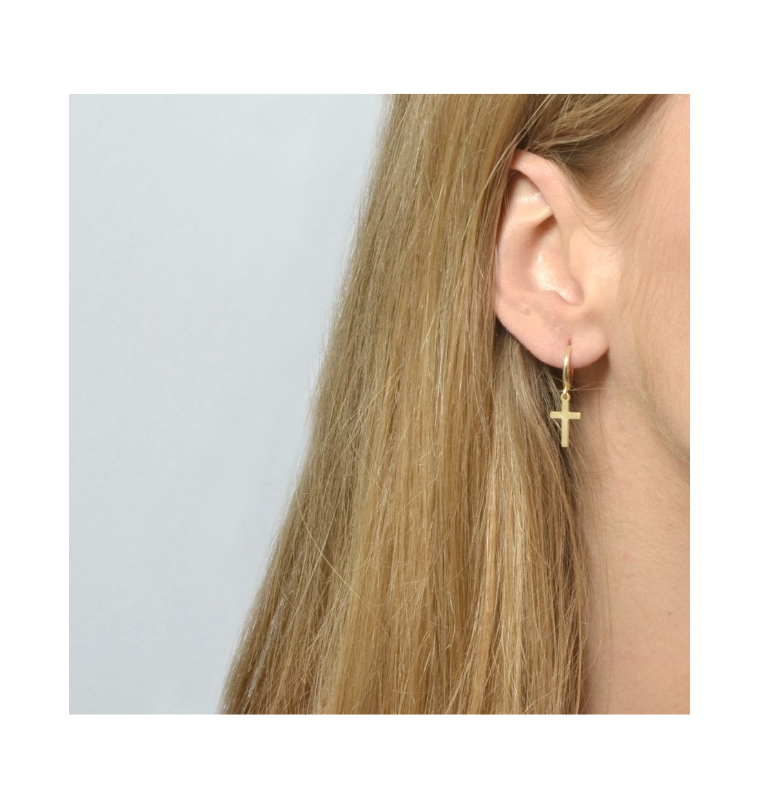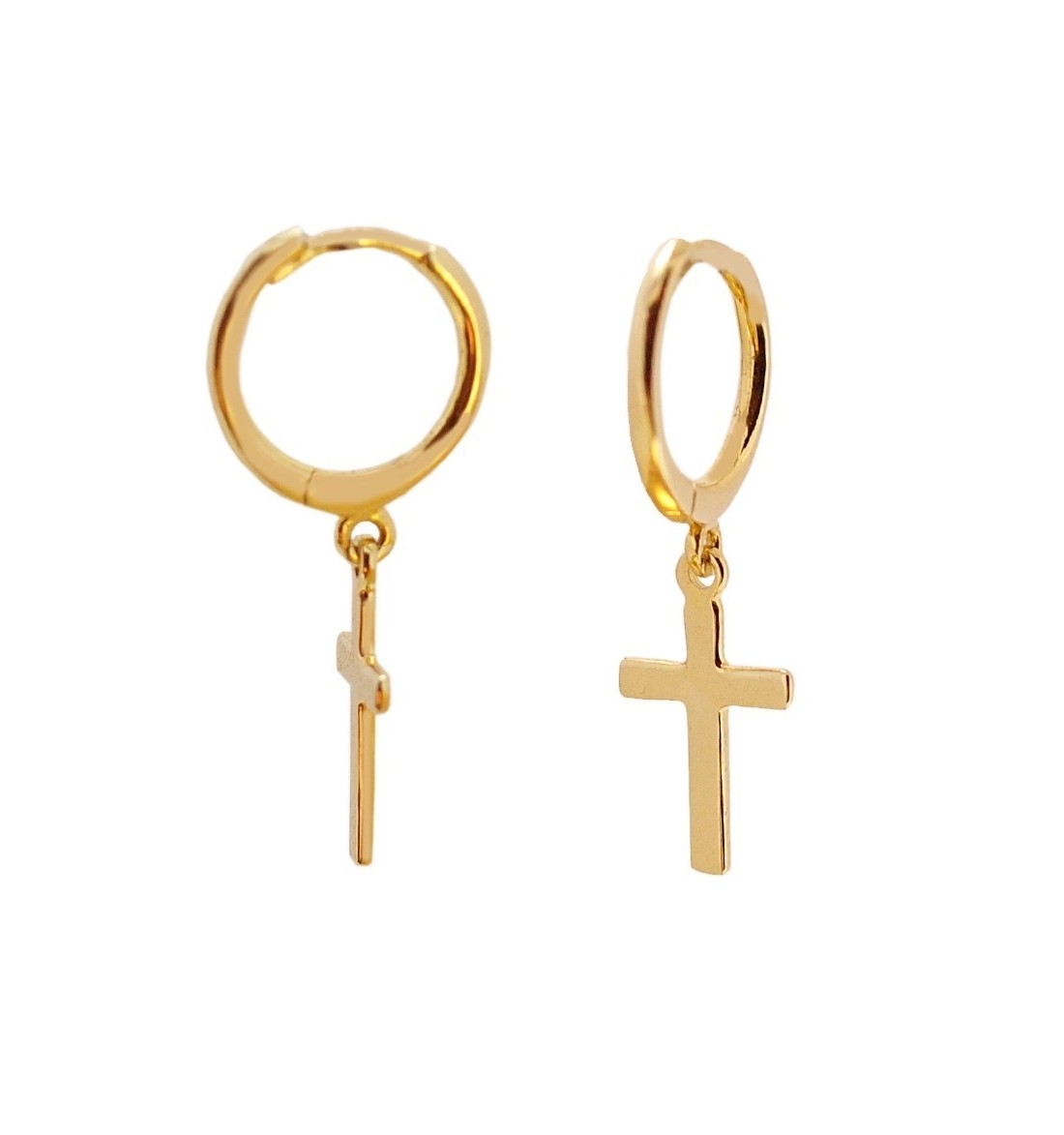 Pendiente aro con cruz de plata 925 bañada en oro.