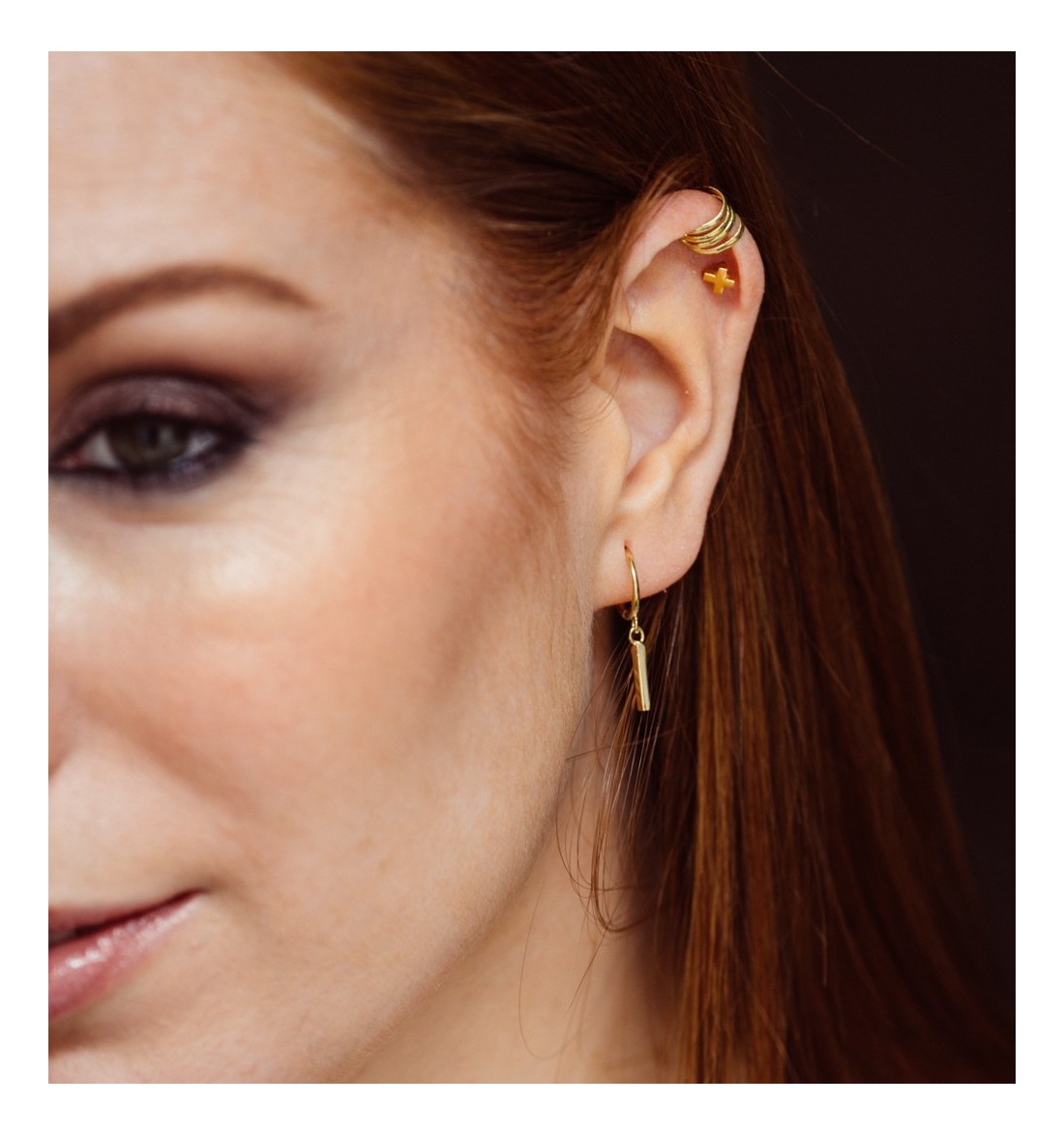 >Pendiente aro con barra de plata 925, bañada en oro.