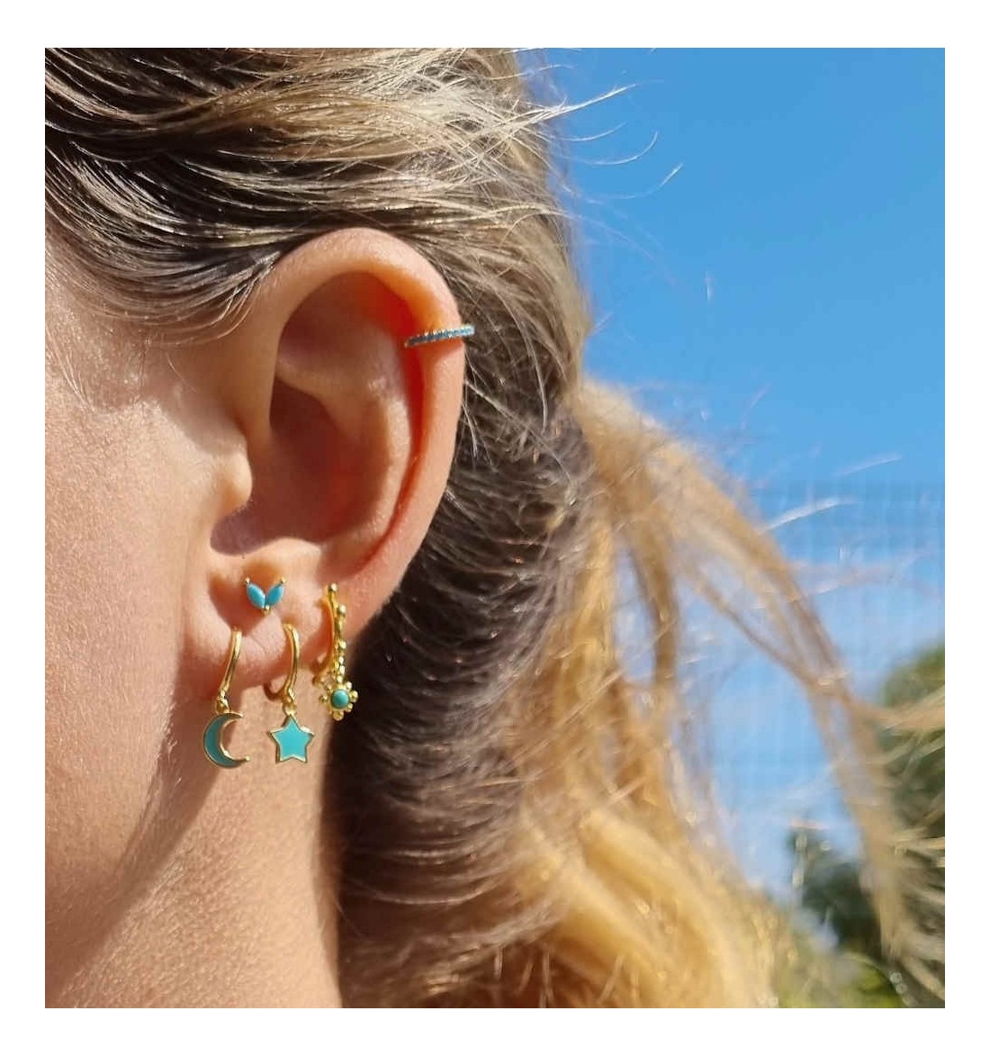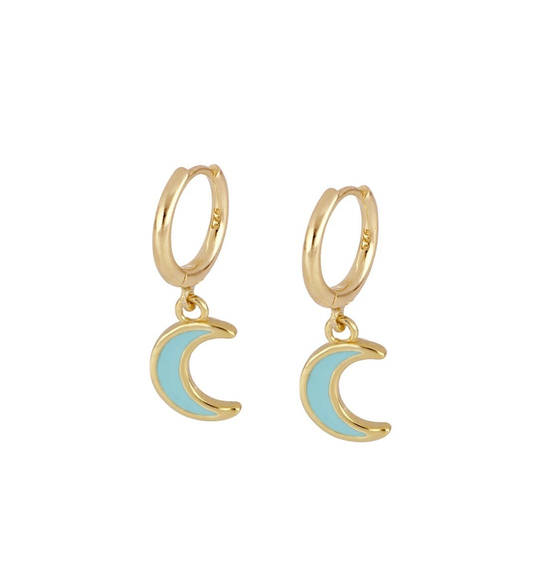 Pendientes de plata con baño de oro con aro y luna de enamel turquesa