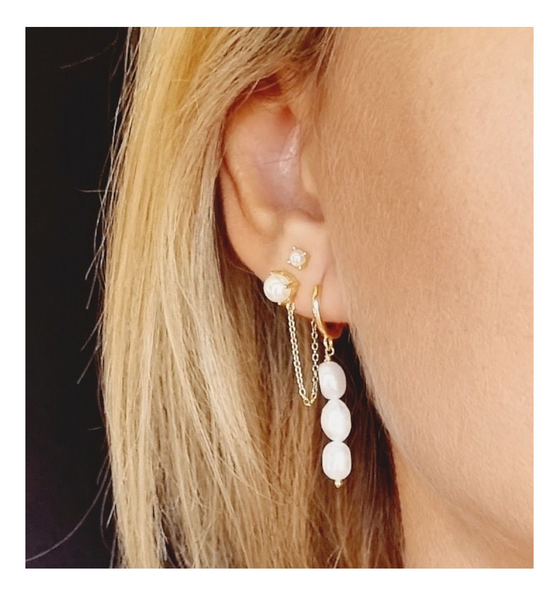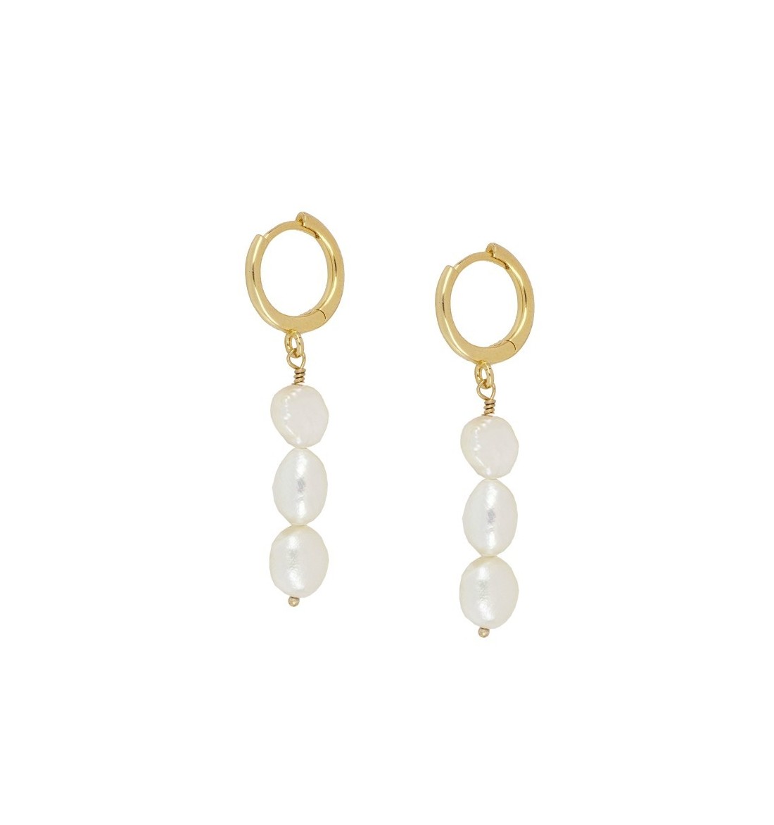 Pendientes de aro y perlas, de plata de ley y baño de oro.