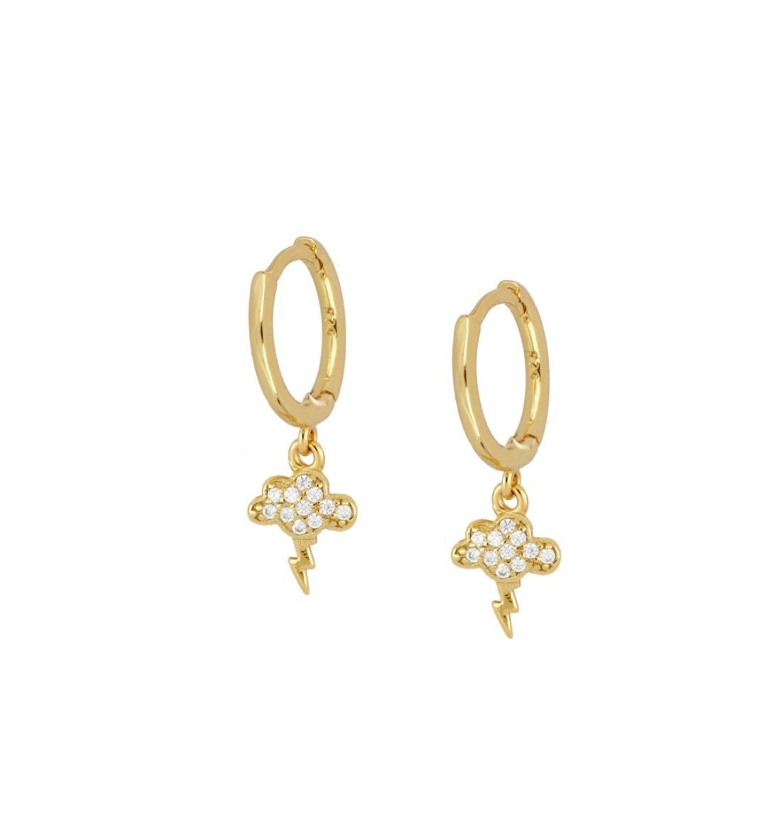 Pendiente aro con nube y rayito, de plata 925, con baño de oro.