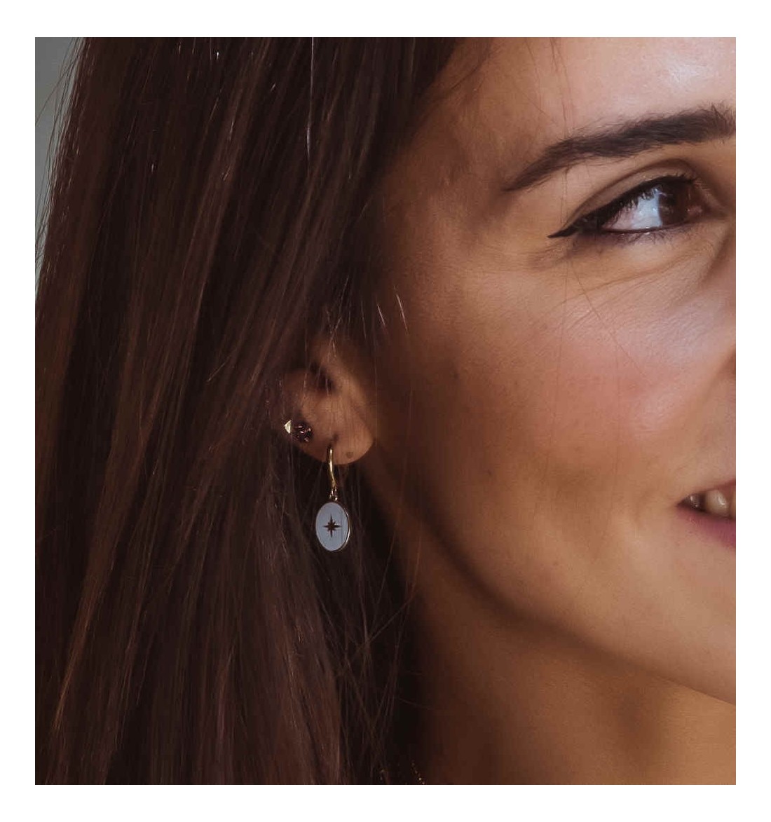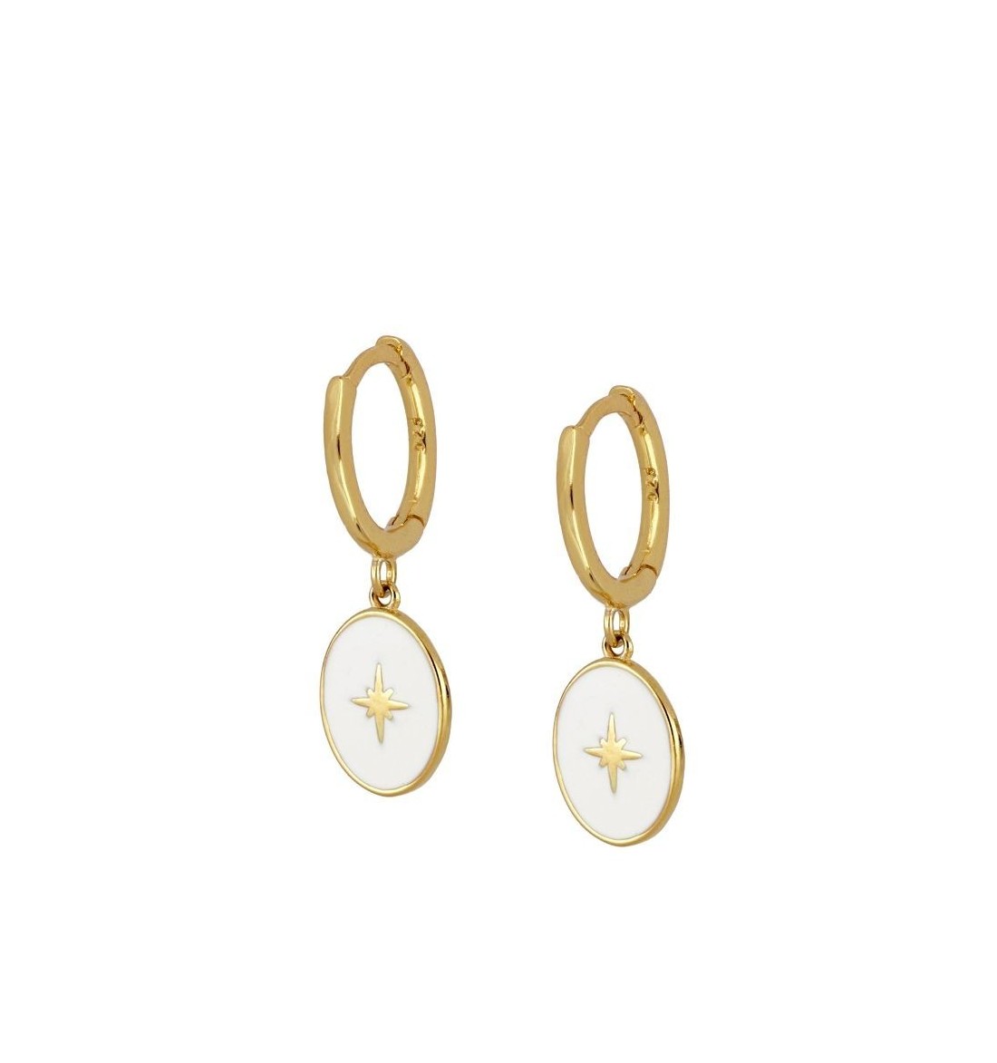 Pendiente aro con rosa de los vientos, de plata 925, bañada en oro.