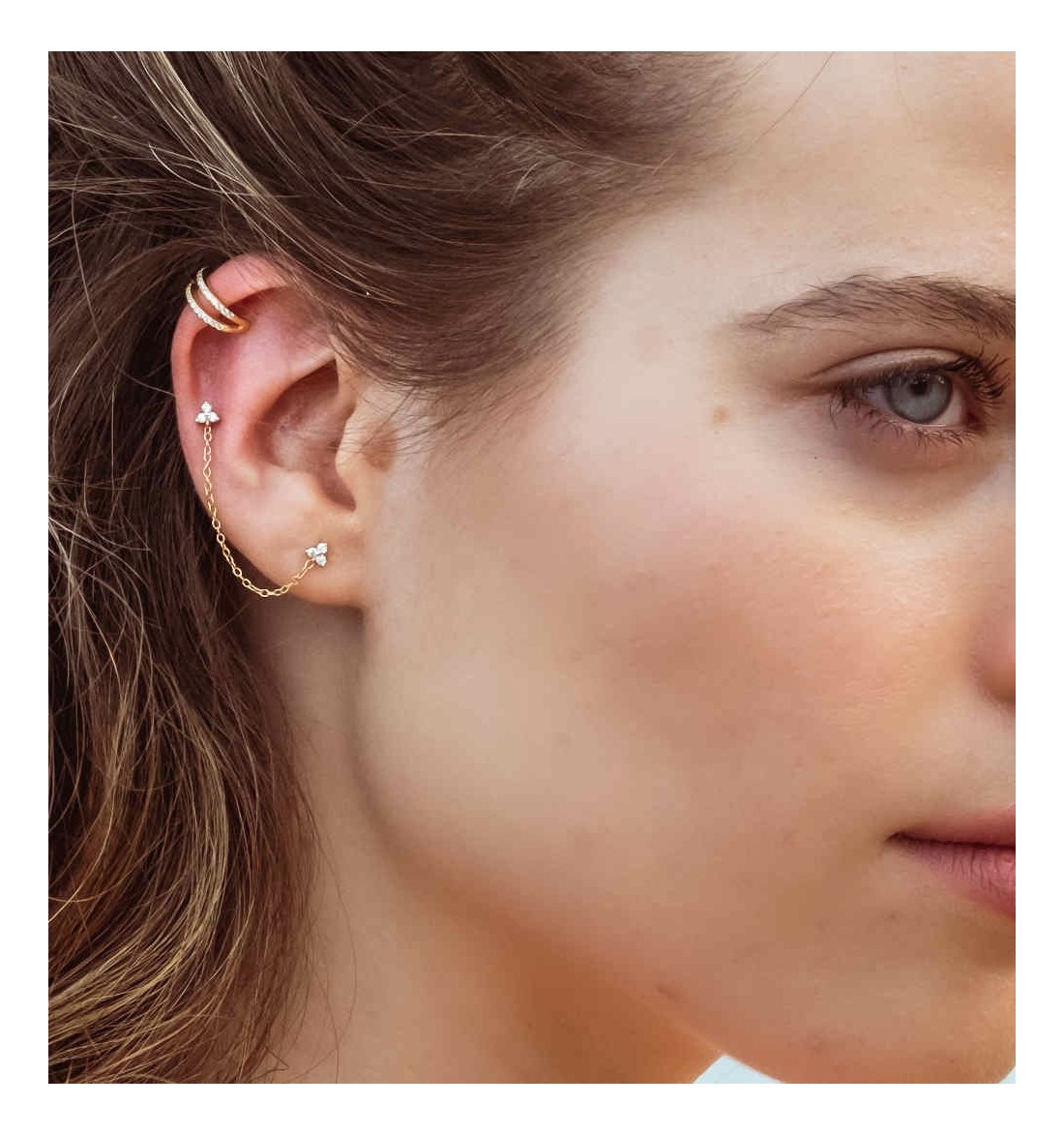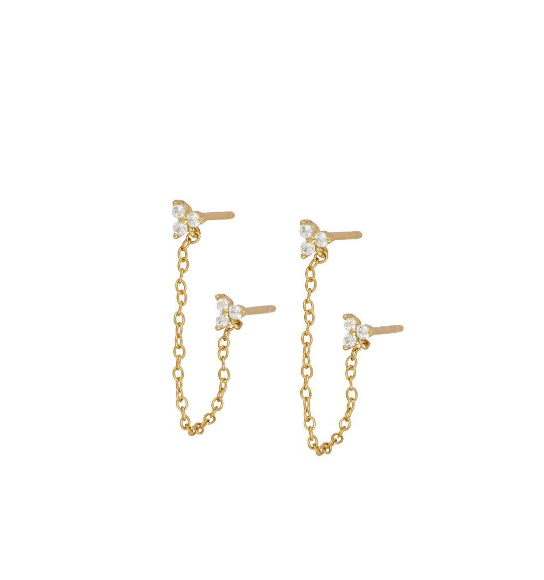 Pendiente doble unido con cadena de plata 925 con baño de oro