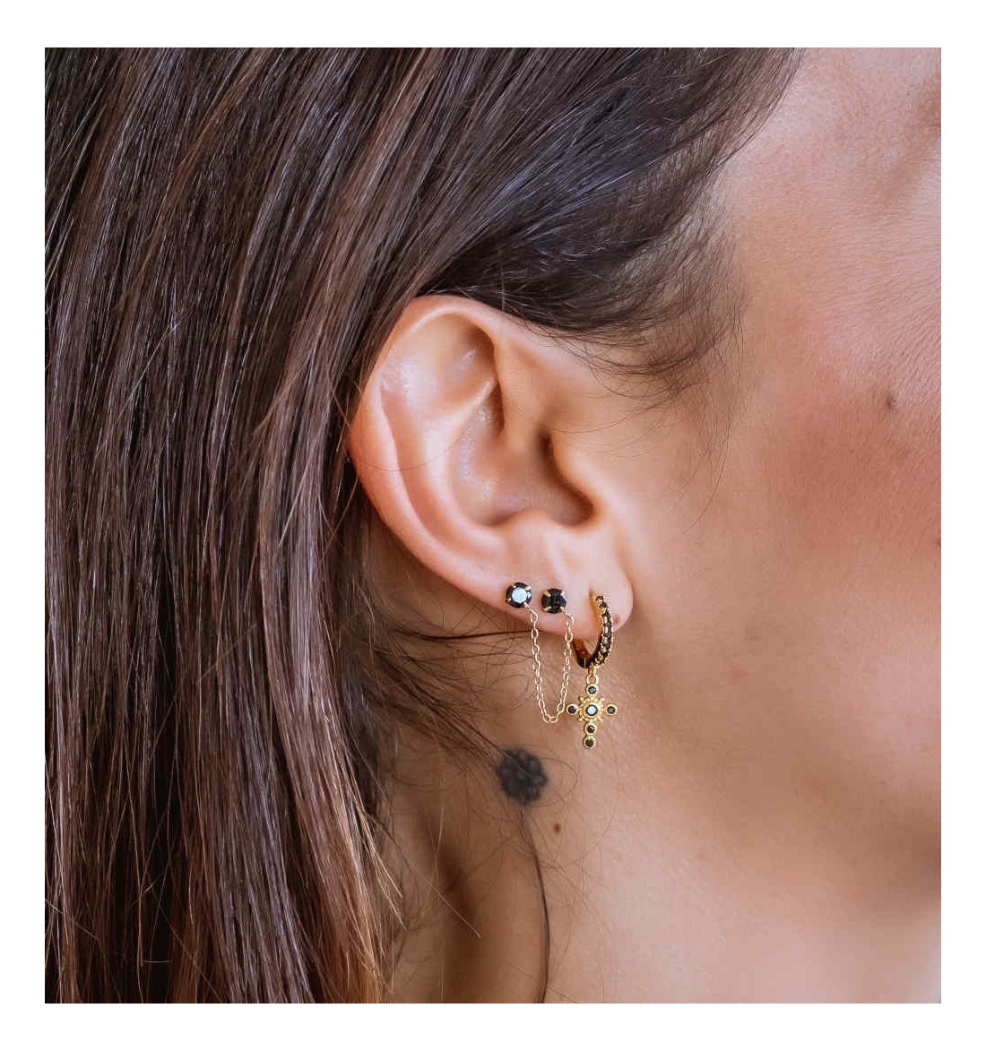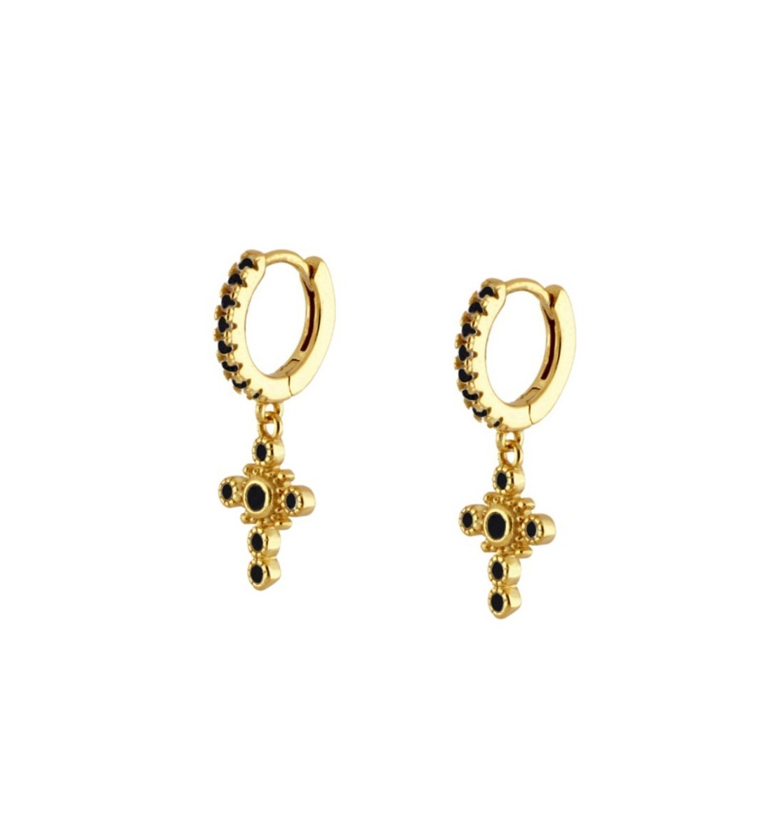 Pendiente aro con cruz de plata 925 bañada en oro.
