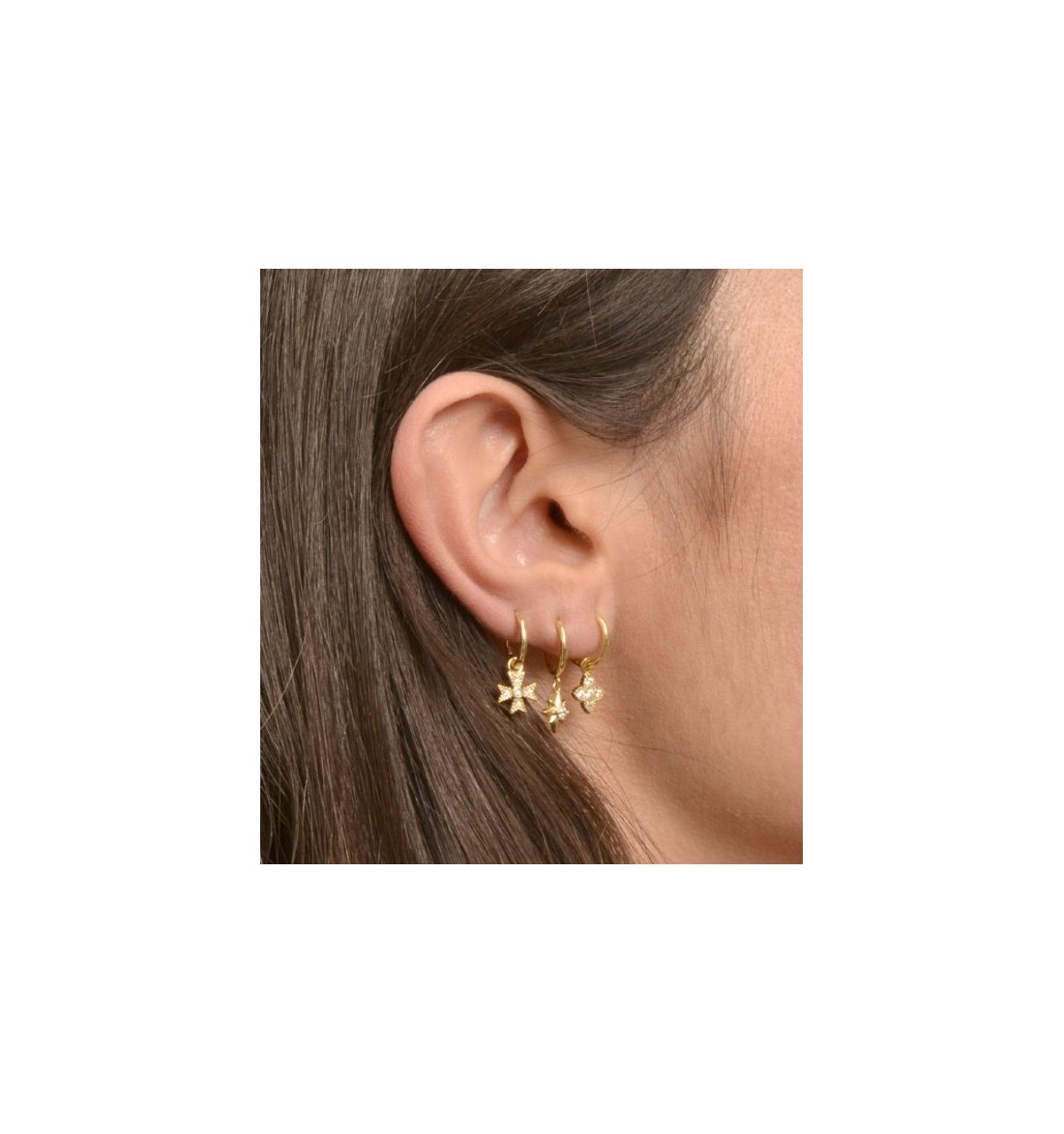 Pendiente aro con Cruz de Malta de plata 925, bañada en oro.
