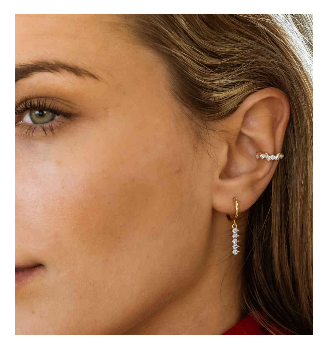 Pendiente aro con circonitas de plata 925 bañada en oro.