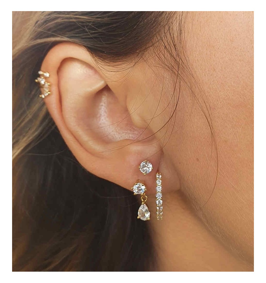 Pendiente piercing para oreja, disponible en plata de primera ley, con baño de oro
