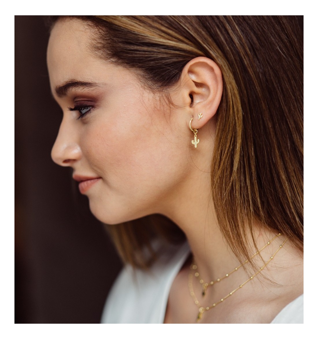 PENDIENTES ARO CON CACTUS GOLD | Bymarta.es