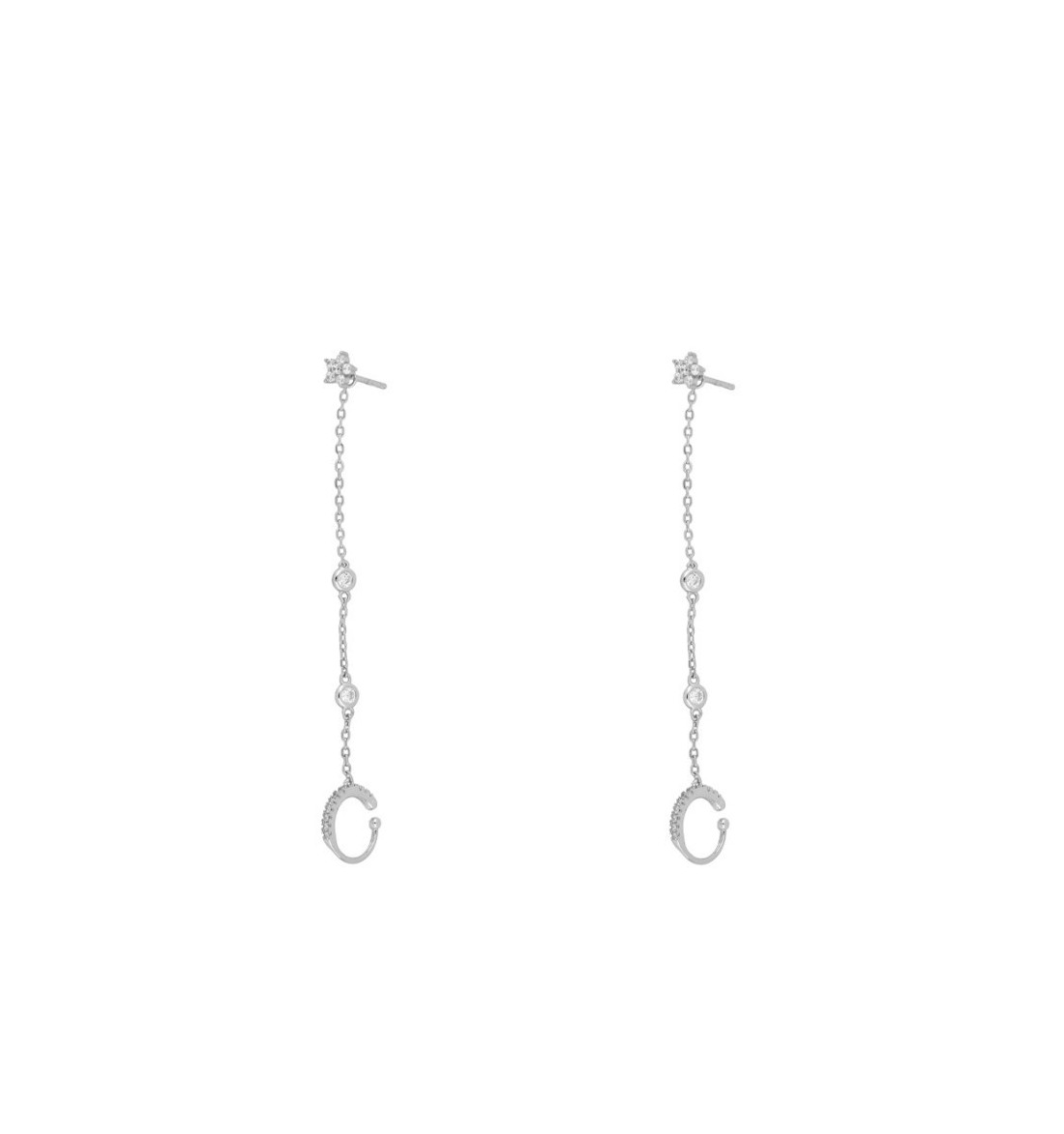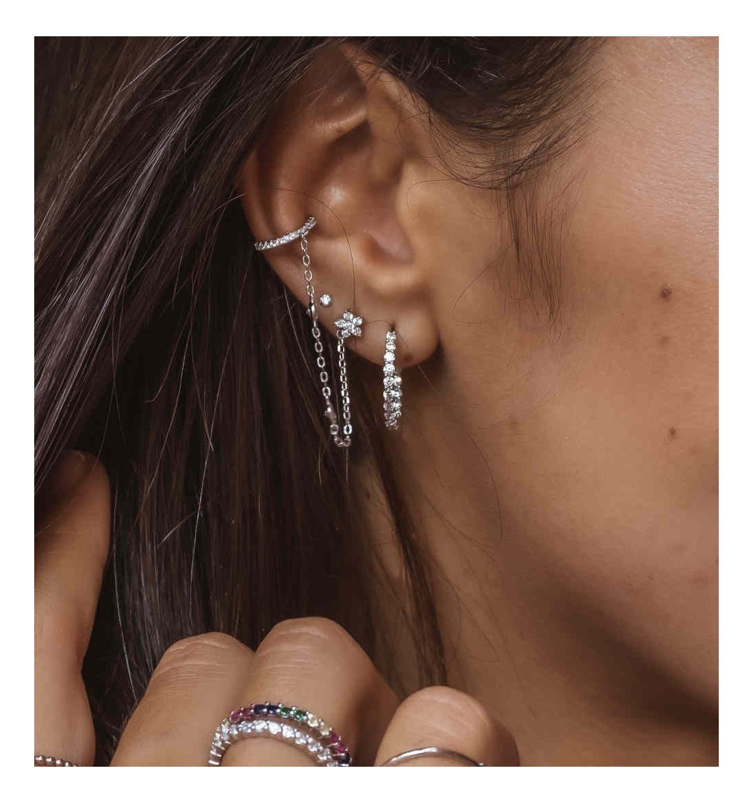 Pendiente Ear cuff con cadena y con boton en forma de estrella con Circonitas.