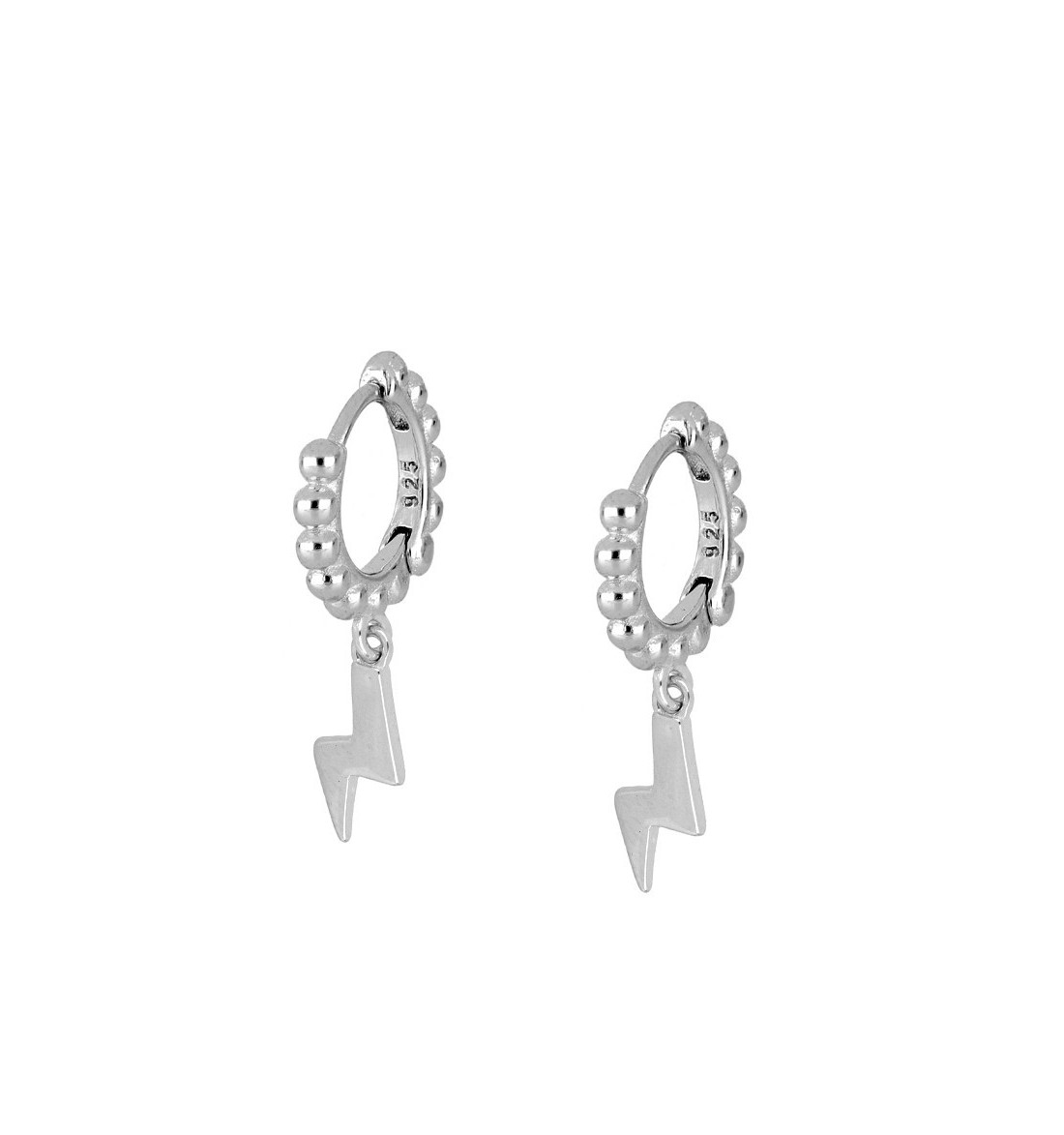 Pendiente aro con bolitas y rayo de plata 925.