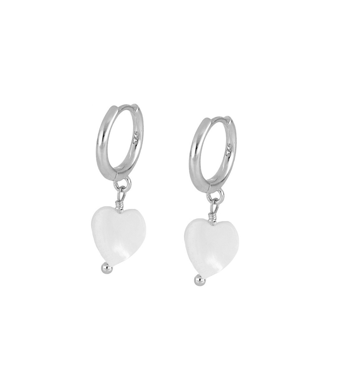 Pendientes de plata, aro con corazón de nacar
