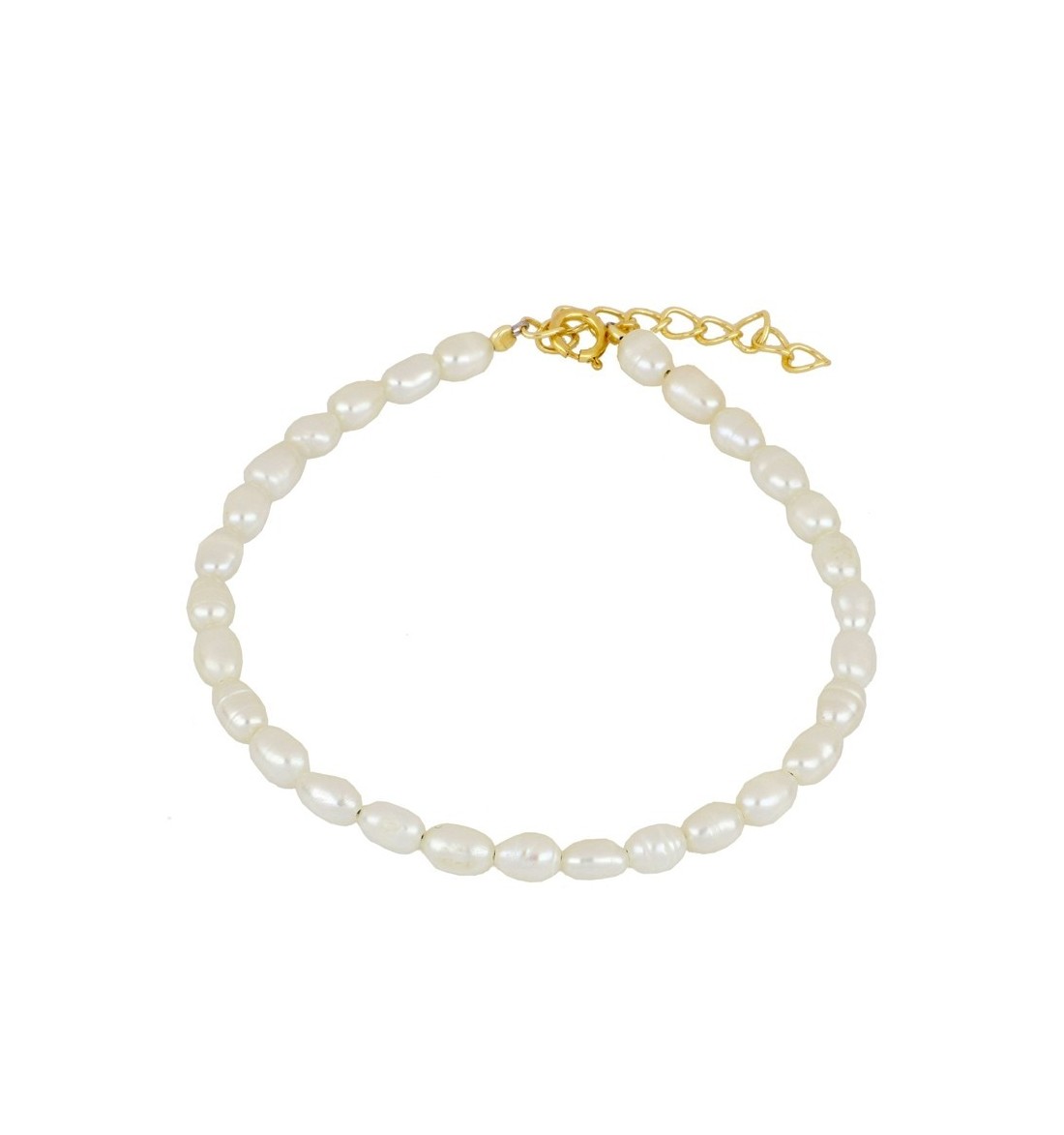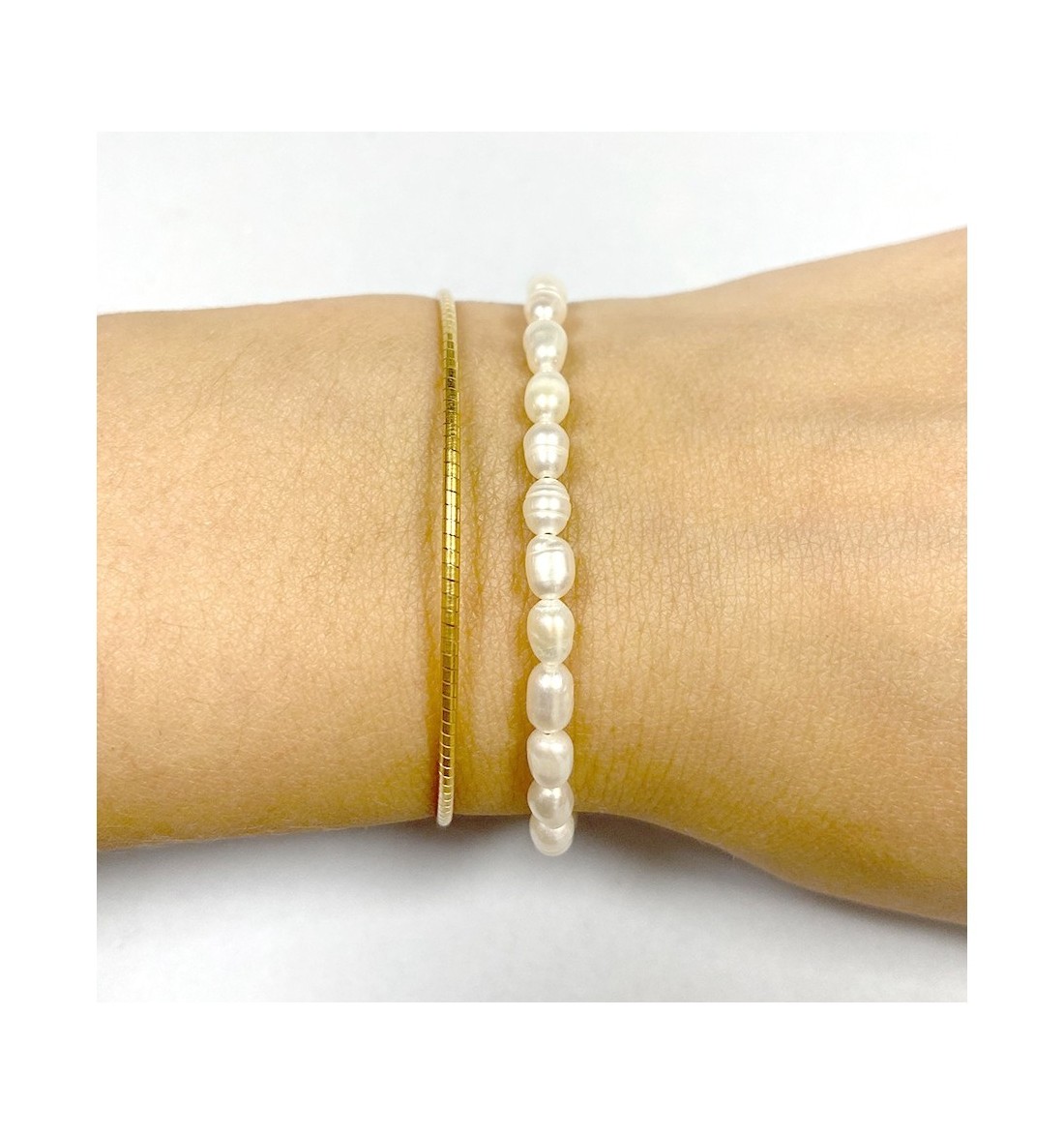 Pulsera de plata de ley con perlas naturales, bañada en oro.