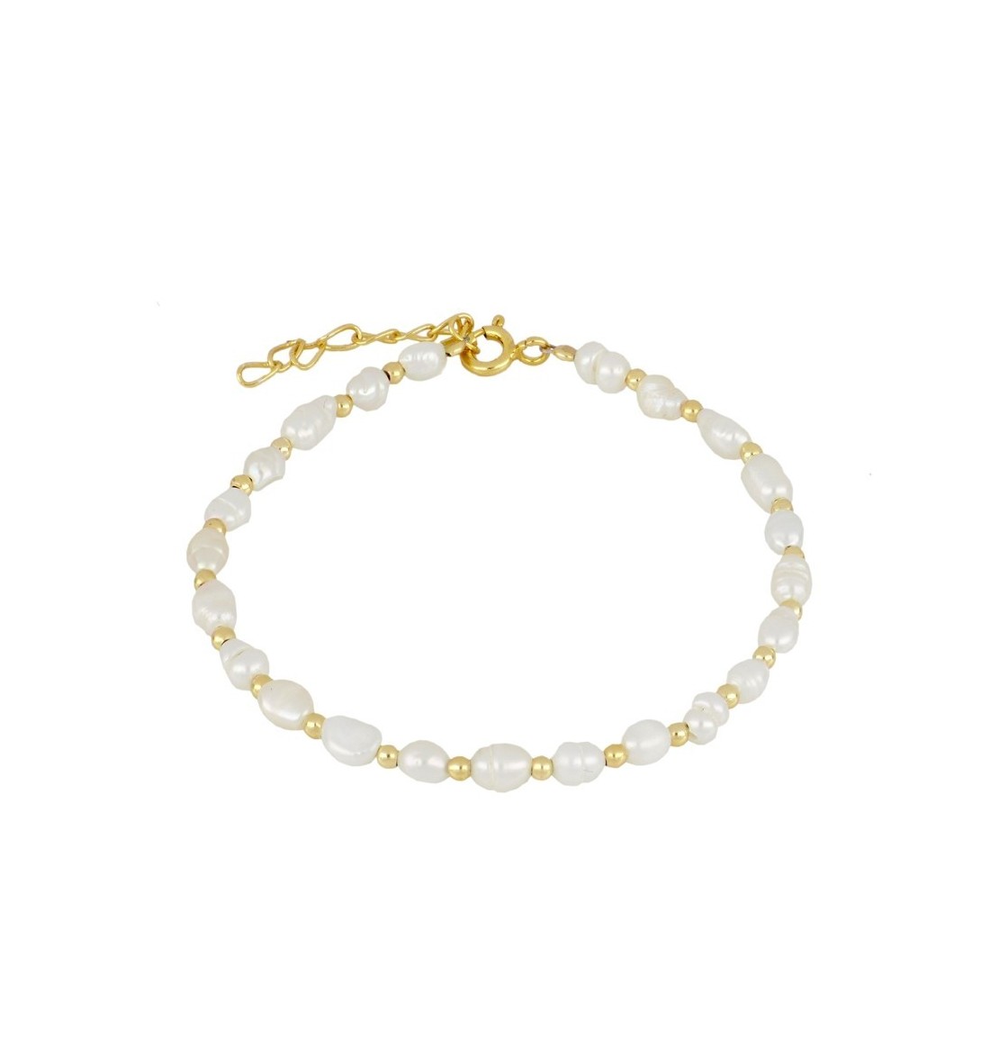 Pulsera de plata de ley con perlas naturales, bañada en oro.