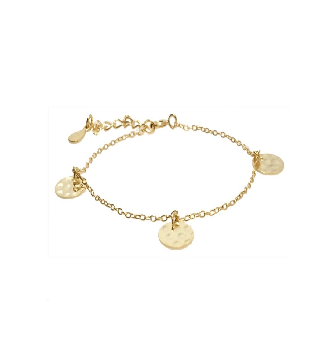 Pulsera cingara, con medadilltas con textura,  de plata 925 bañada en oro.